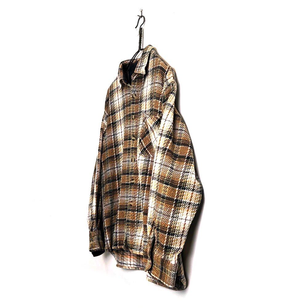 80s cotton flannel shirt Light brown x white check pattern in light and light colors. Made of fluffy 100% cotton flannel fabric that feels nice to the touch. A piece with a moderately generous size and a clean silhouette.