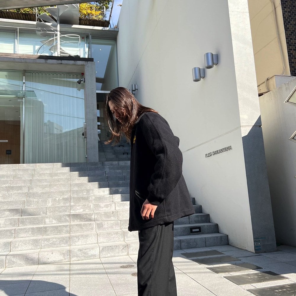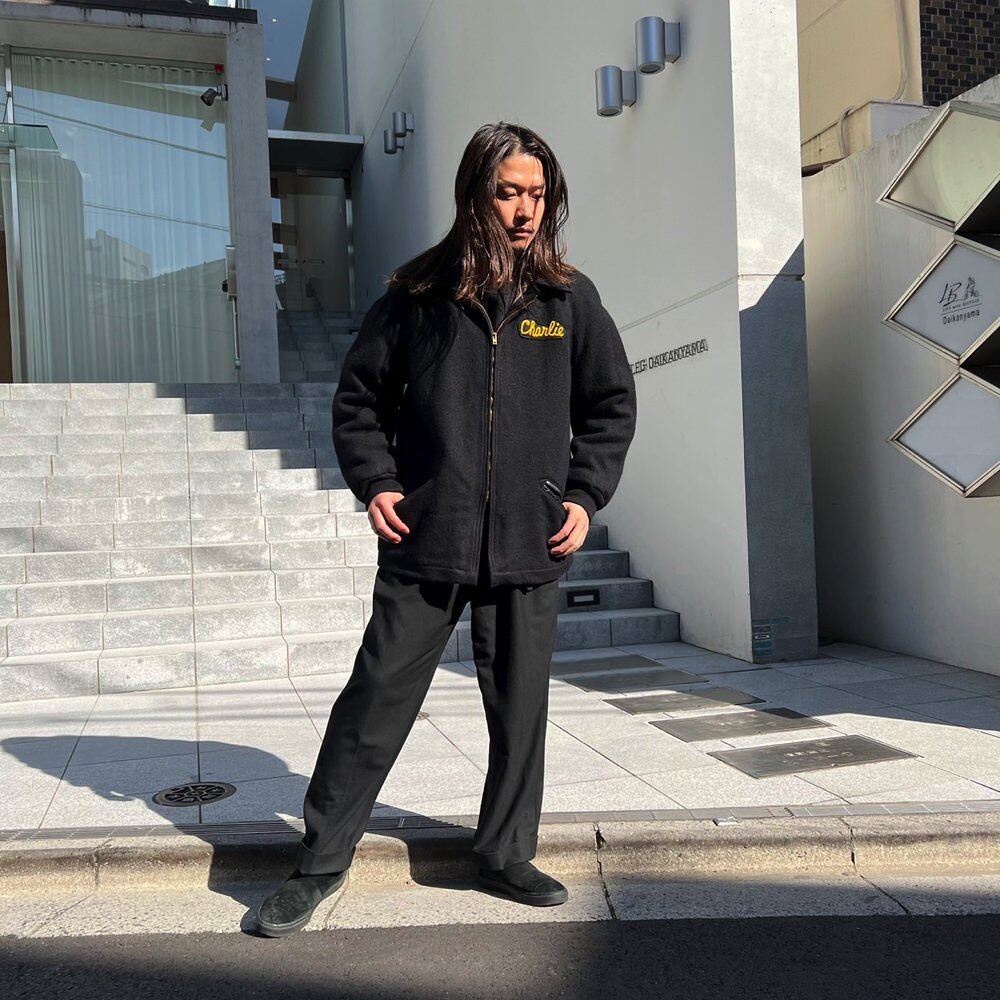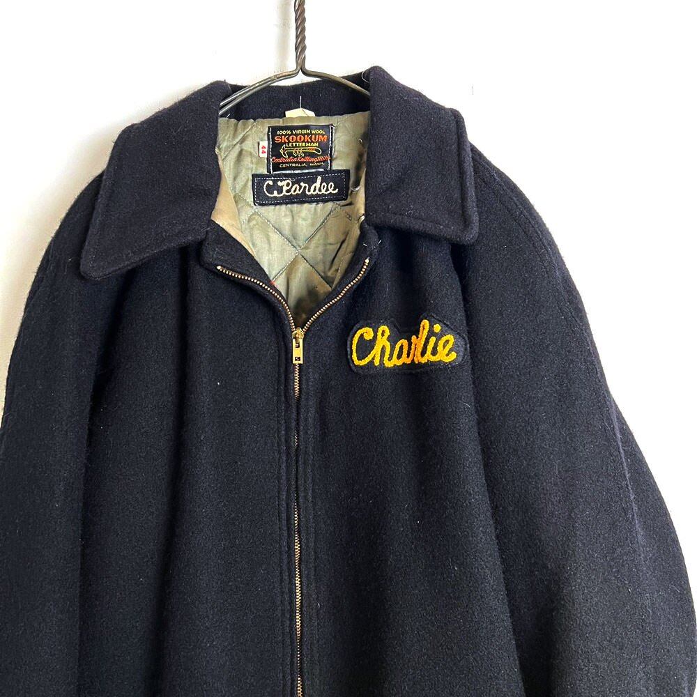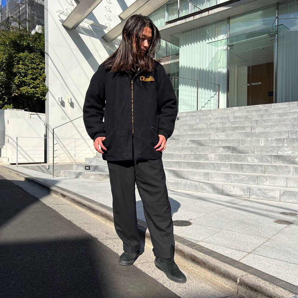 80s Award Jacket With yellow patches that stand out on the black body, this is a simple yet attractive piece with a masculine feel.It has a good amount of room and has a great silhouette.It is made from 100% wool fabric that is sturdy and thick. , sporty front zip design