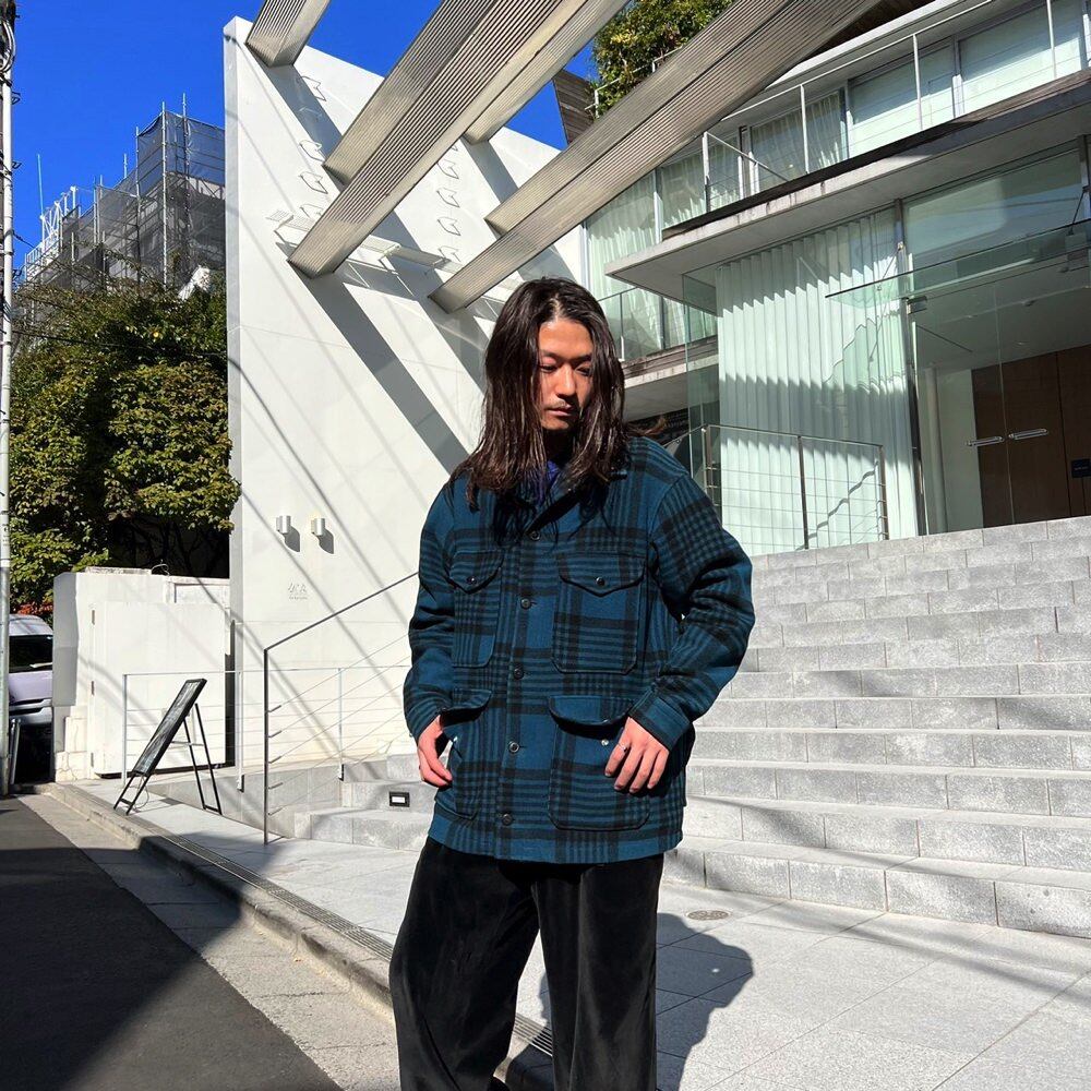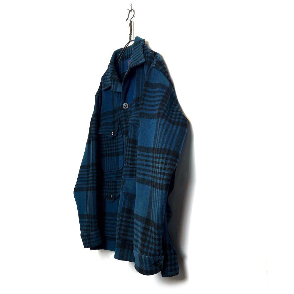 1960s Pendleton Cruiser Jacket A check pattern with a cool blue and black color and outdoor details such as a game pocket on the back.A piece of clothing made from thick 100% wool fabric that gives it a solid feel. The size is L, a good silhouette jacket that is not too big and has just the right amount of room.