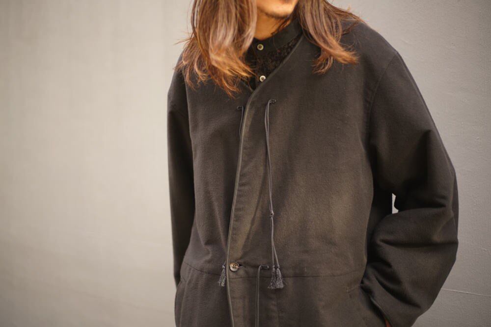 A double-breasted shawl collar wool coat made by POLICY from the 1980s.