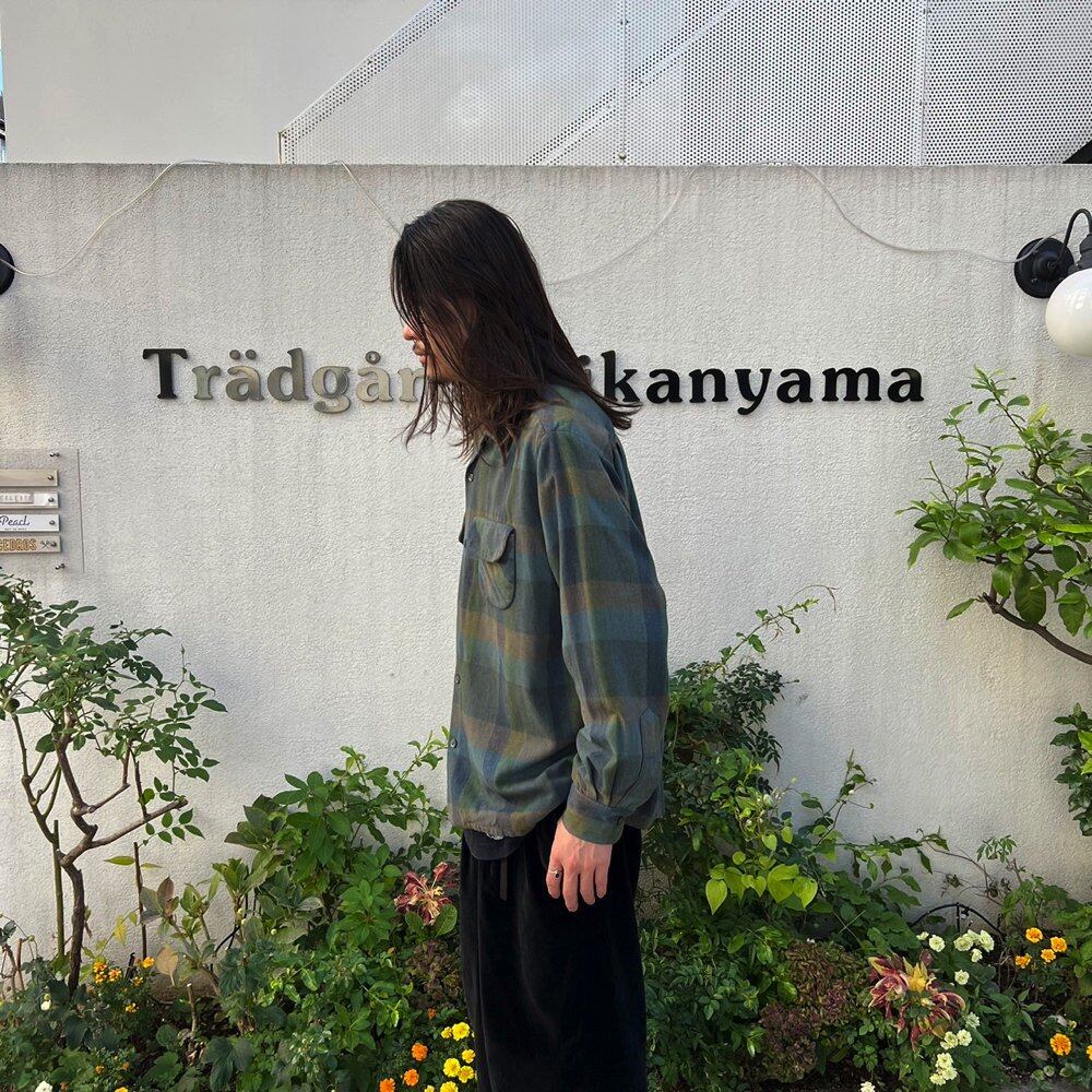 A wool shirt from the 1960s with a check pattern in dark shades of saxophone blue and grayish olive.The acrylic blend wool fabric is soft and smooth to the touch.It has just the right amount of room. Vintage shirt with good size and silhouette