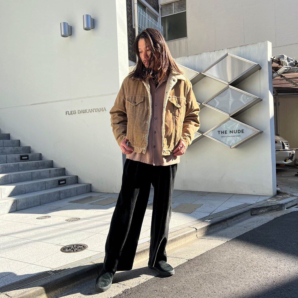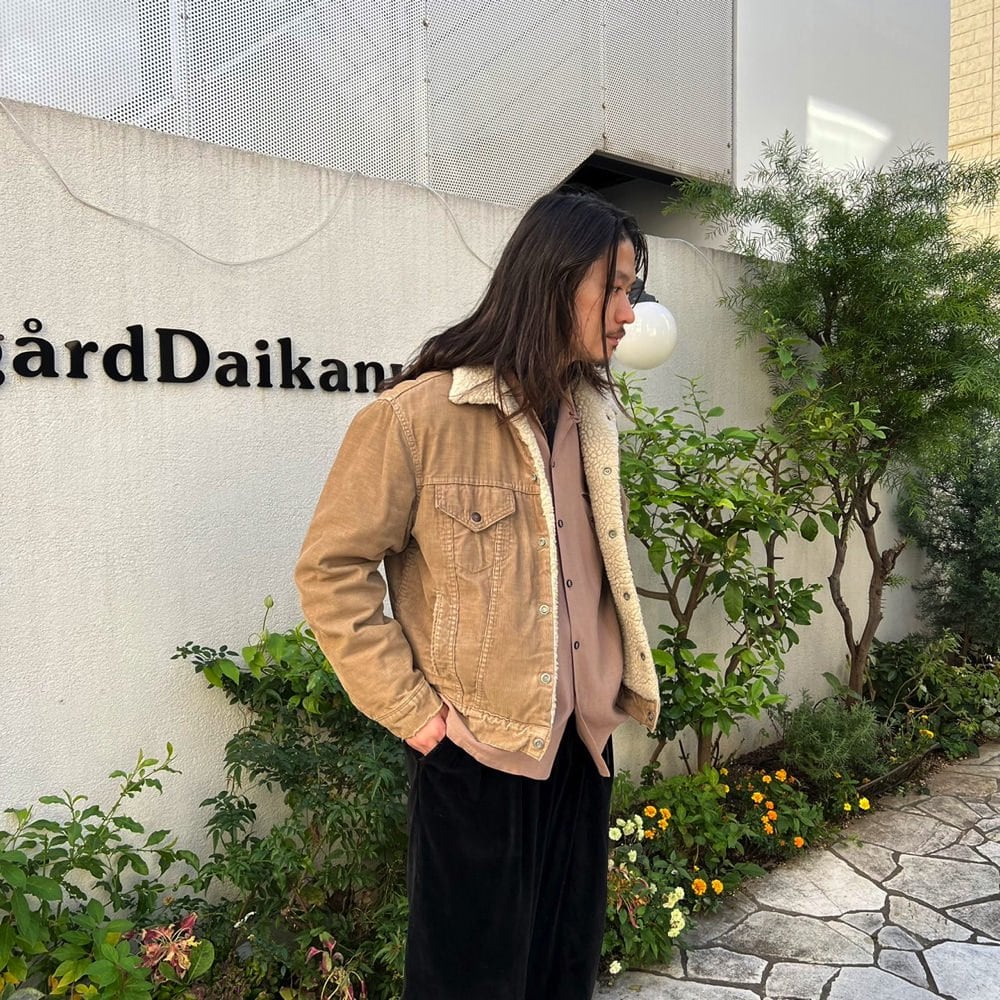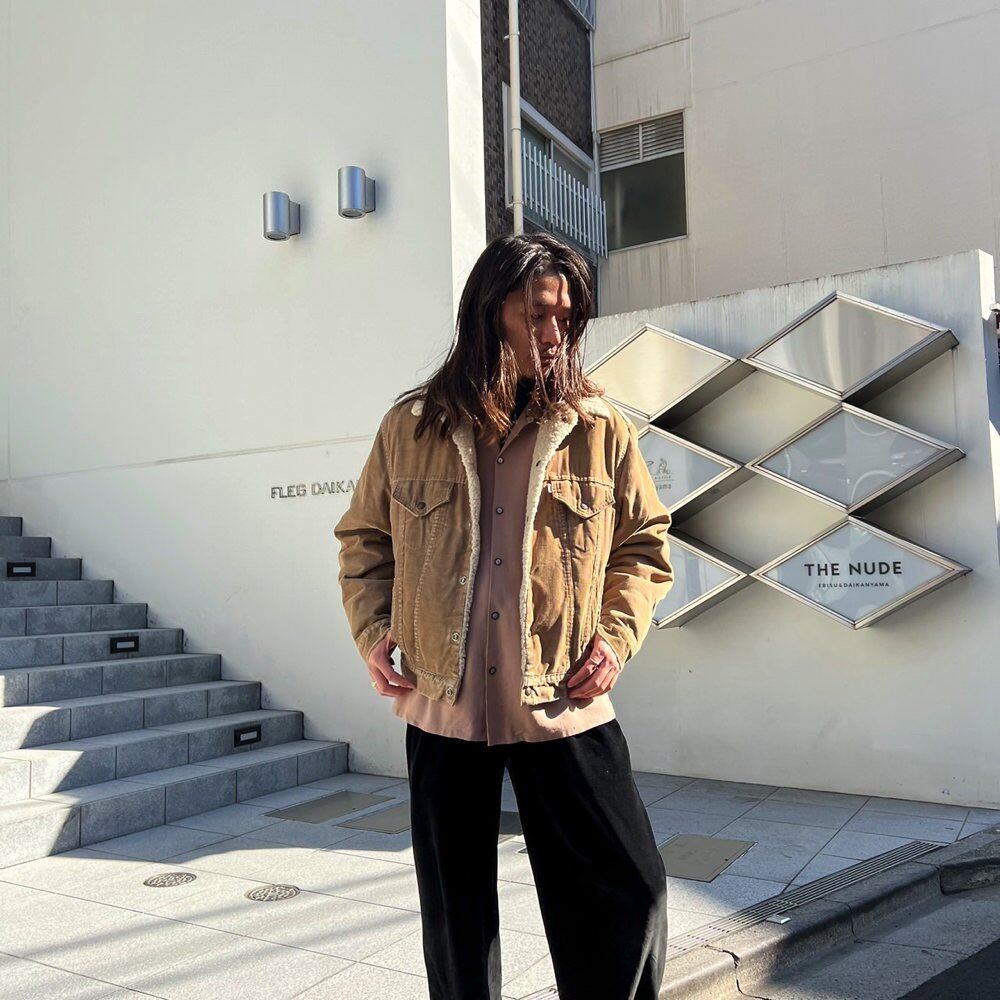 From the late 70s to the early 80s Levis boa lined corduroy jacket The beige color has an earthy feel, the texture of the corduroy fabric has become more flavorful over time, and the single size description goes well with the off-white colored boa. The size is 42, which is a good size and has a good amount of room.