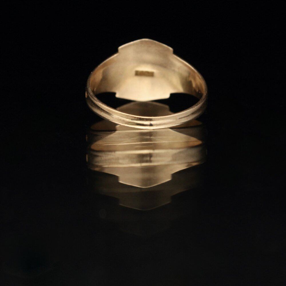 Vintage class ring from 1913. This individual is also valuable as a valuable document from before World War I. It has an older signet ring type design, and the rugged silhouette gives it a casual and elegant look. The auspicious crest and thunder crest are drawn on the side, and although it may have been made by a Chinese person, the influence of Asian and ethnic designs that were popular in the early 20th century can be seen. From the engraving, it may be 10k gold or higher purity because the color is strong. Please check the condition in the photo and understand the vintage characteristics before purchasing.