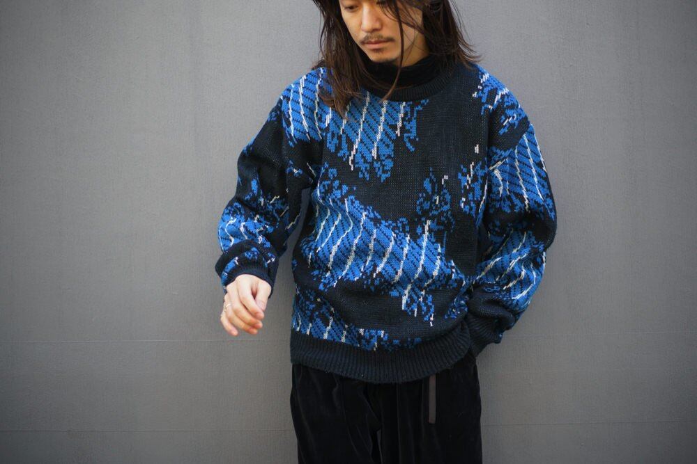 Abstract pattern crew neck knit made by SATURDAYS around the 1980s.