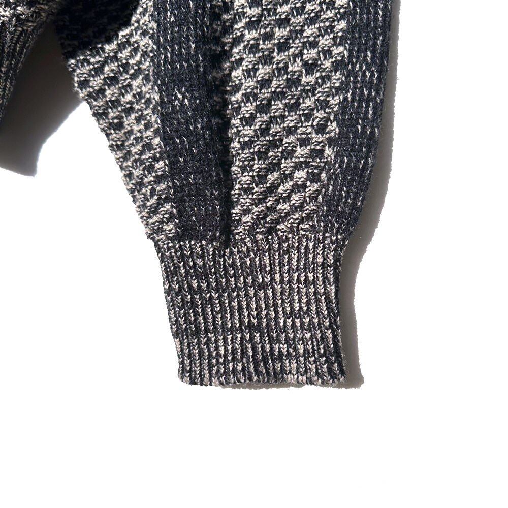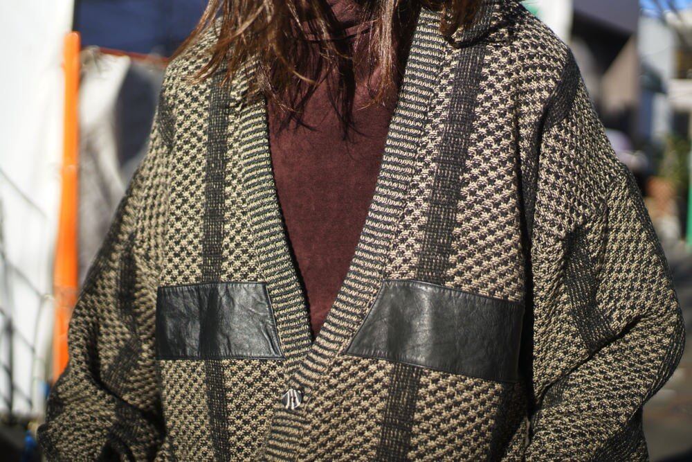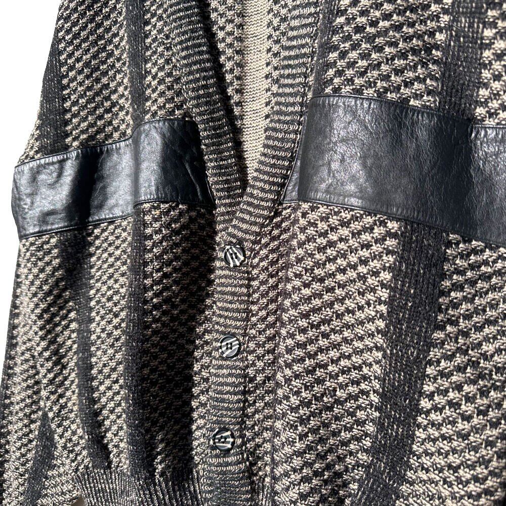 A playful design typical of the 80s with leather patchwork on expressive low-gauge monochrome knit fabric.