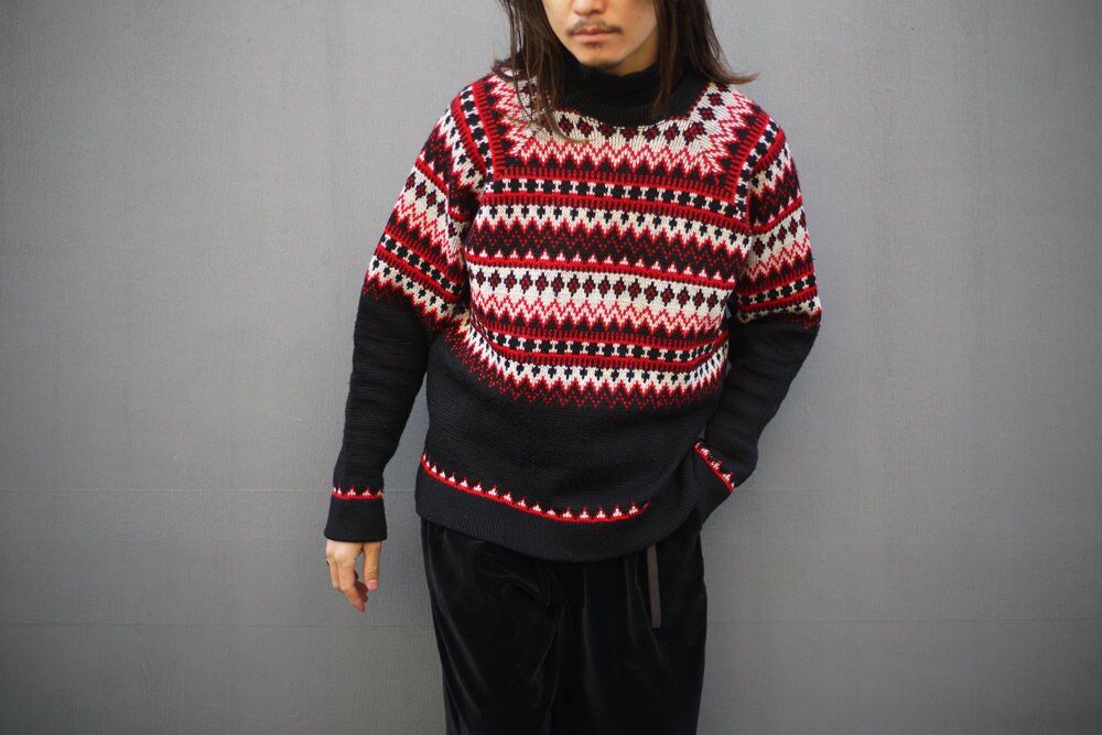The black-based body is rare among vintage Nordic sweaters, and the contrast between the red and white gives it a cool look.<BR> A relaxed silhouette with just the right amount of room in size L.
