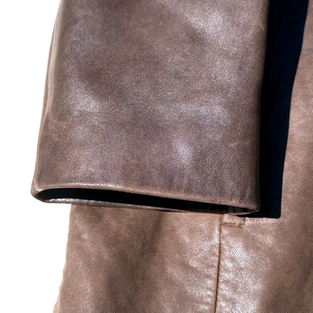 The simple design with only slash pockets gives an elegant impression, and the glossy leather gives it a sexy look.