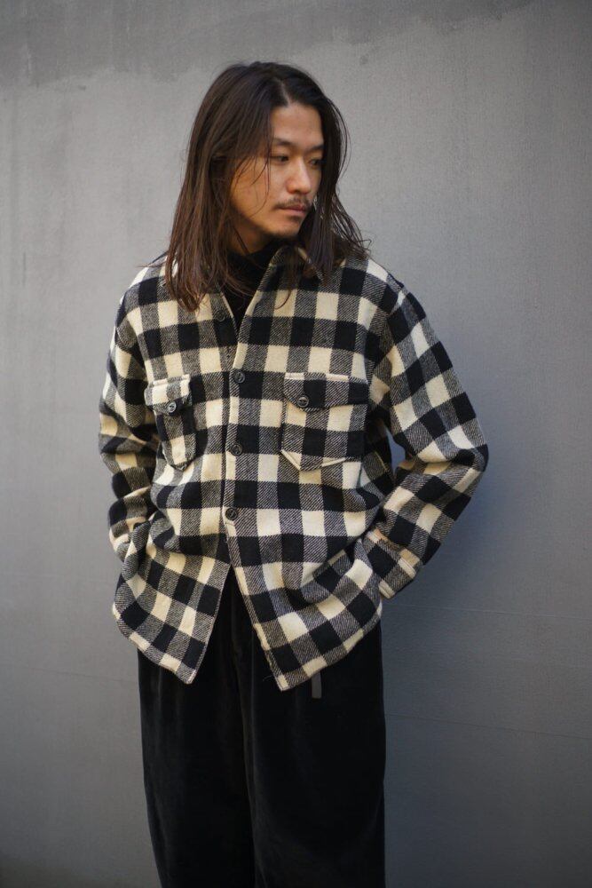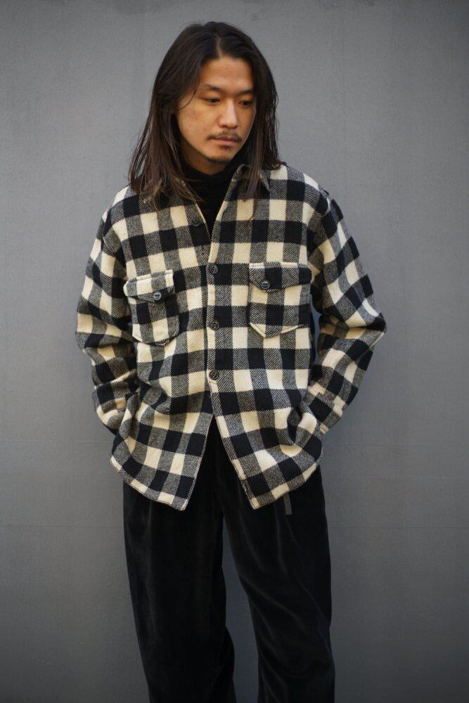 The rugged black and white buffalo check on the thick wool fabric gives off a rustic sex appeal.