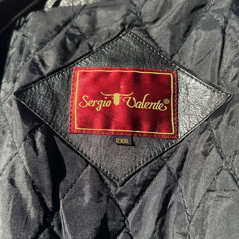 A zip-up leather jacket made by Sergio Valente from the 1990s.
