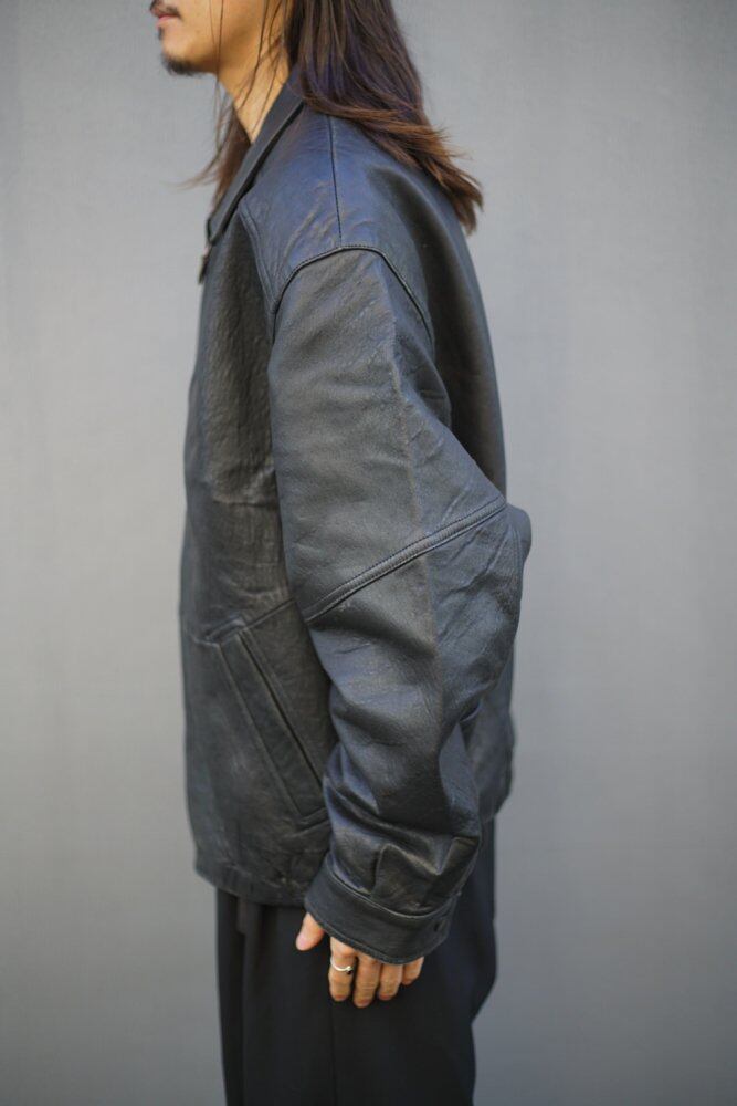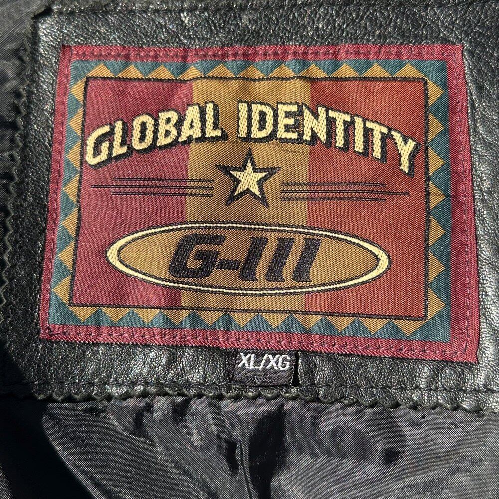 A zip-up leather jacket made by GLOBAL IDENTITY from the 1990s.