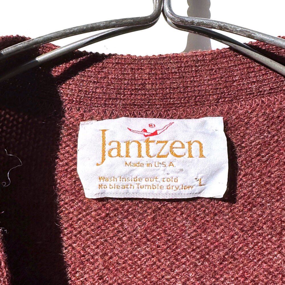 A wool cardigan from the 1970s that is characterized by its smooth and light texture.