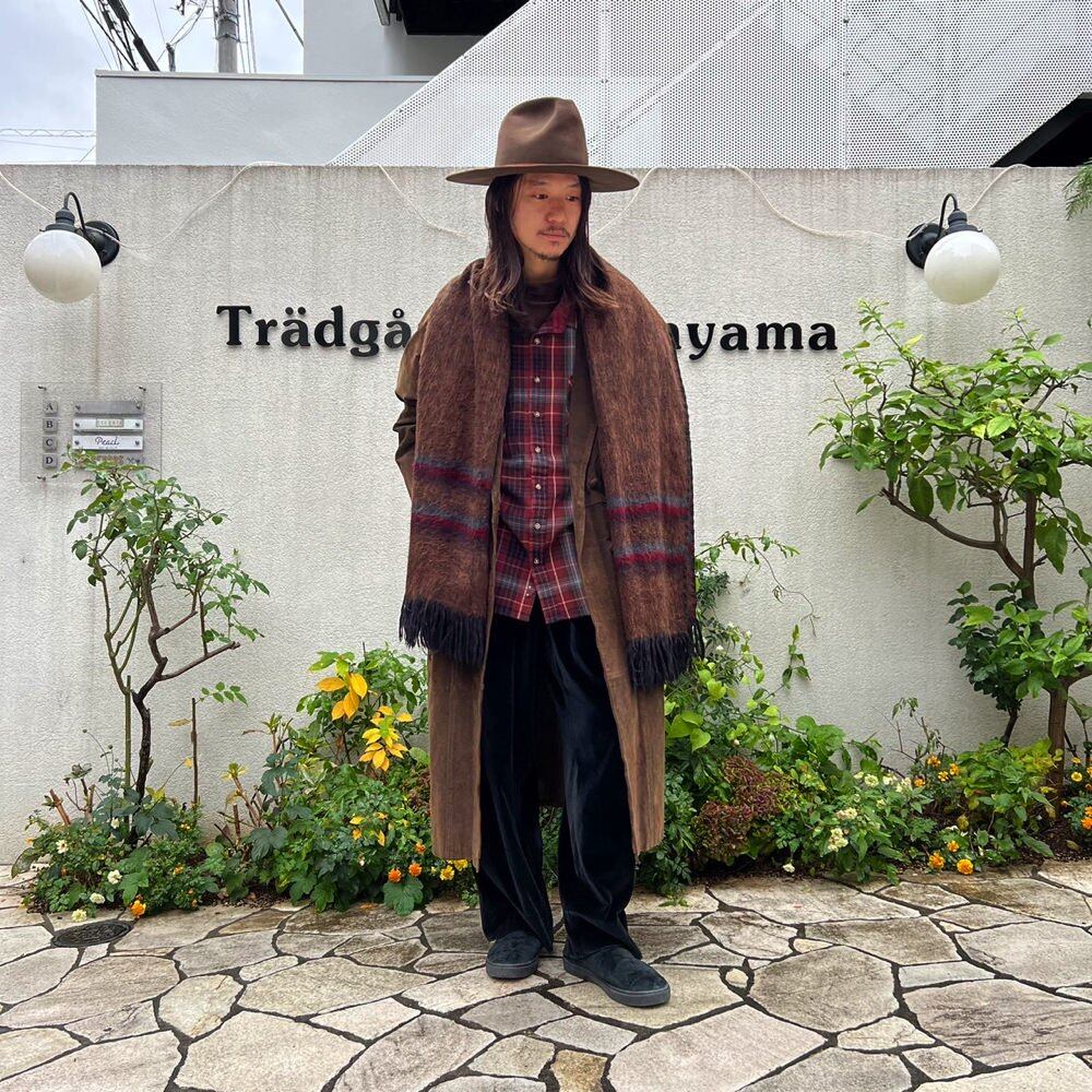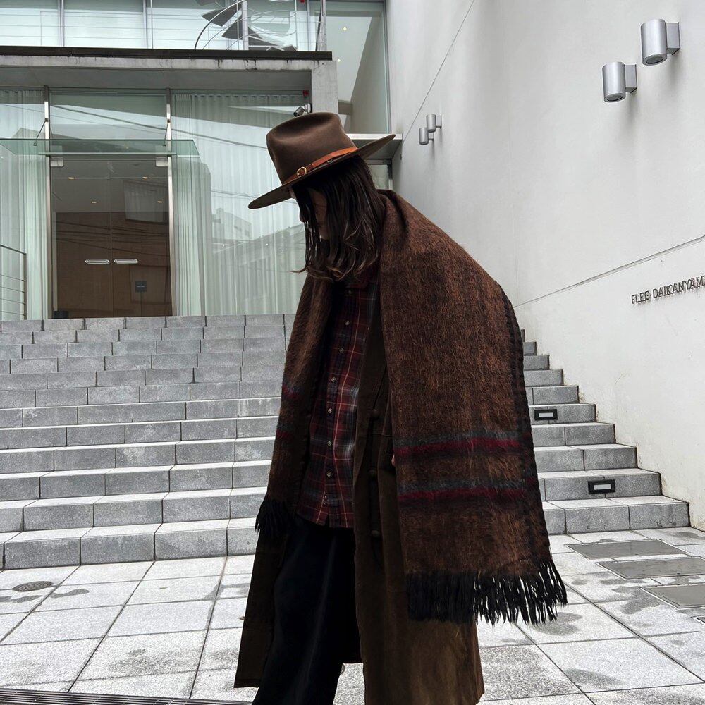 This luxurious handmade vintage stole is made of 100% alpaca material that has a long pile like mohair and is soft and smooth like cashmere.Length 200 cm with deep brown and black colors and red and blue lines as a nice accent. A piece with plenty of volume.