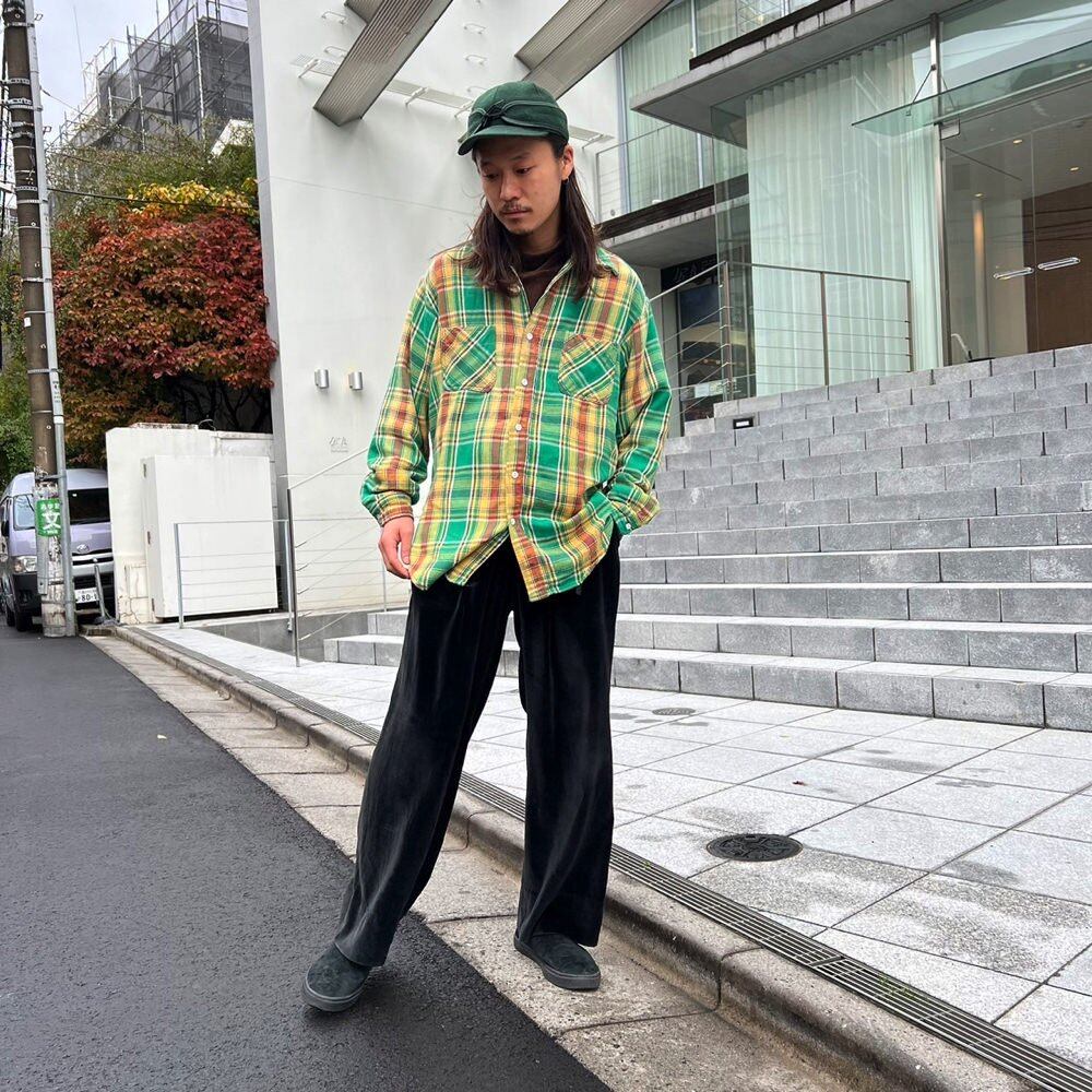 70s Big Mac check shirt A rare coloring of green, mustard, and brown. Made of 100% cotton flannel fabric with just the right amount of flesh and fluffy and soft to the touch. There is no size indication, but it is about L to XL. Feeling