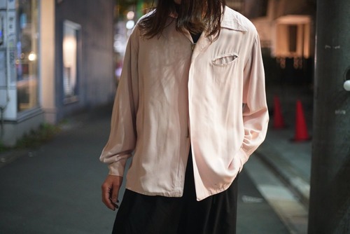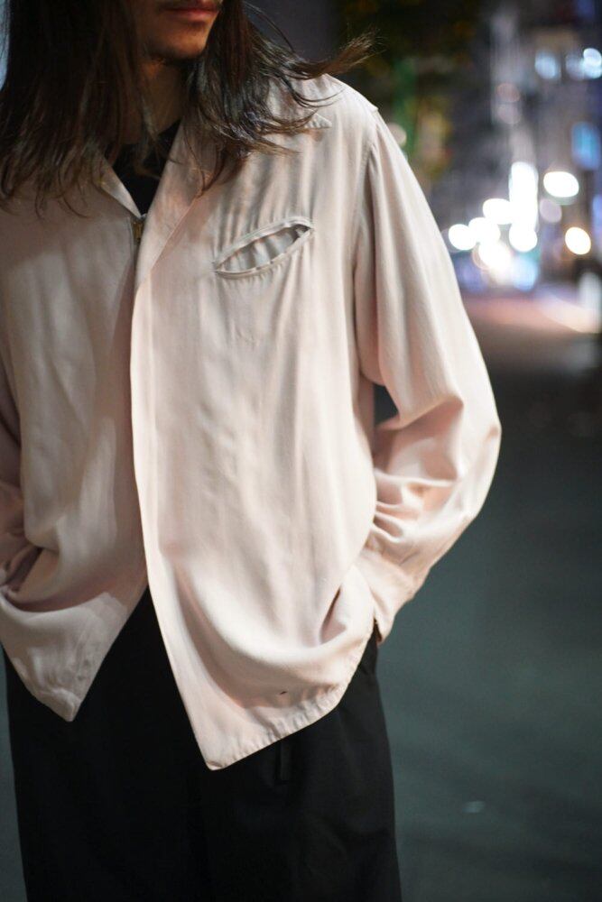 A rayon zip-up open collar shirt made by Perreys from the 1940s.