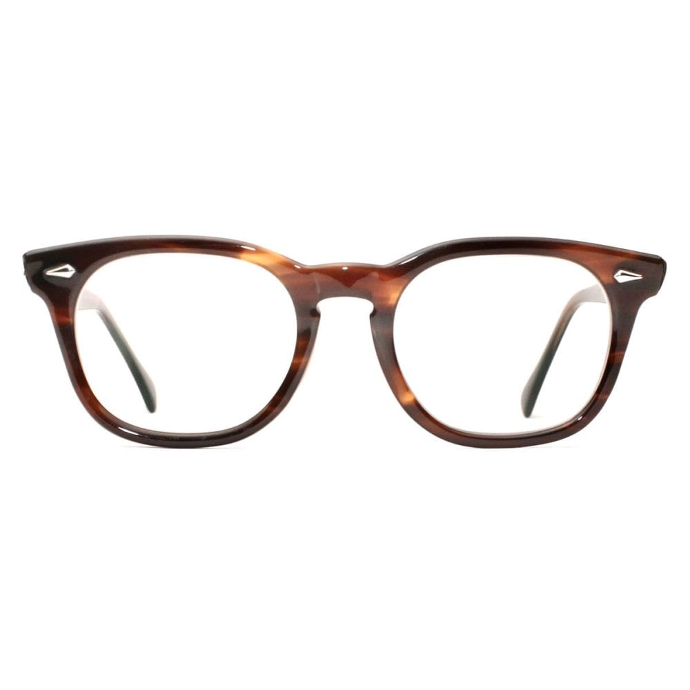 American Optical model stadium from the late 1960s, rare amber color, has become a valuable piece in recent years, but especially old ones are no longer found. This attractive frame has a solid frame that shines in amber color, a diamond hinge similar to tart optical, a distinctive keyhole bridge, and a minimalist and easy-to-fit silhouette. There is no sleeve, just a new clear UV lens. It has been inspected and maintained at an eyeglass store, and has been polished to a natural luster. We have carefully inspected the condition, but as it is a vintage item, there may be scuffs and scratches. Please understand the characteristics of vintage and antique items before purchasing. All of our glasses are maintained and lenses replaced at G Room, an eyeglass store in Ebisu, Tokyo.