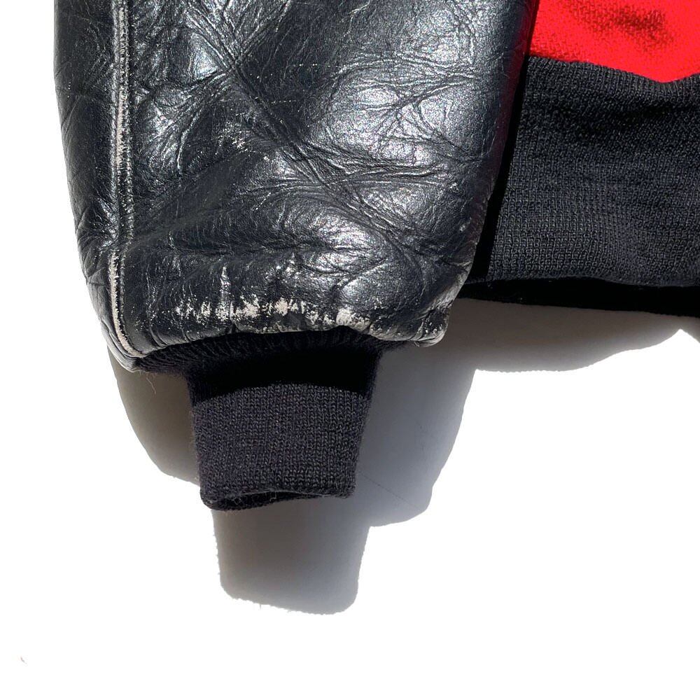 The body is melton wool that has become softer over time, the sleeves are soft cow leather, and the solid color scheme of red body and black gives it a good atmosphere, and the presence of the patch is also a highlight.