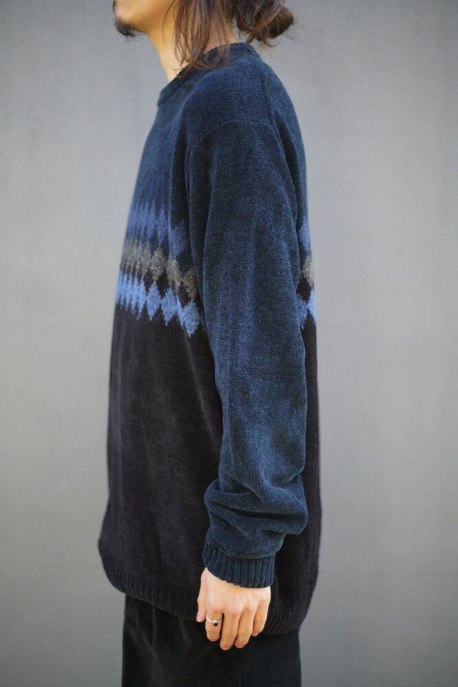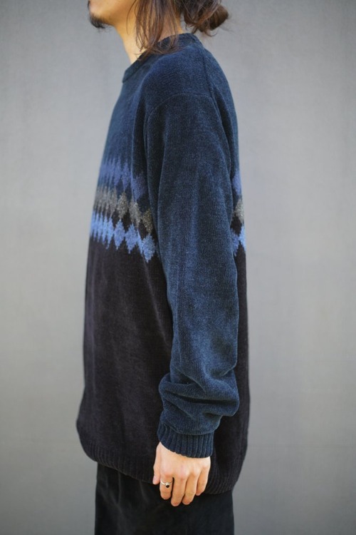 A comfortable velor crew neck knit with a fluffy and soft texture that feels like it contains air.