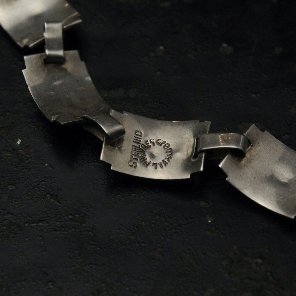 Made in Mexico - Taxco, one of the worlds leading silver mining areas, where many silver artists and craftsmen have gathered since ancient times. This is a vintage item that has attracted attention in recent years, with a unique evolution that shows influences from Aztec natives to Native American jewelry-like designs that show the influence of American Southwestern, and even sophisticated minimal design from Scandinavia. This one has a top design that protrudes from a square plate, and the avalon shell, which is said to have purifying effects, gives it an elegant look. It has a presence but is casually elegant. Probably around the 1970s, 925 silver, stamped Mexico Taxco-L.NARVAEZ. Since it is an old item, there may be some scratches, etc. Please check the photos and understand the vintage characteristics before purchasing.
