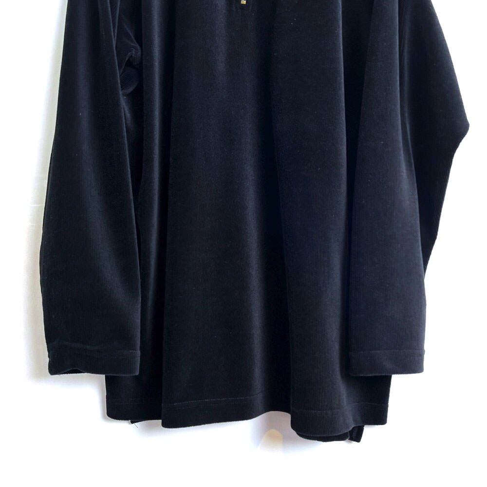 90s Pullover Shirt A stretch corduroy fabric with ultra-fine ridges that has a smooth sheen similar to velor.A pullover shirt with a sporty half-zip design.Its a good-sized piece thats not too big and has just the right amount of room.