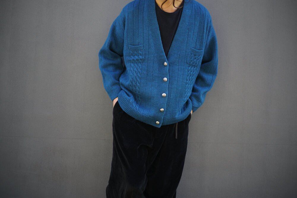 The deep V-zone typical of the 70s, soft and sweet knitting, and the playful design of the combination of cable knitting and pockets on the front are impressive.