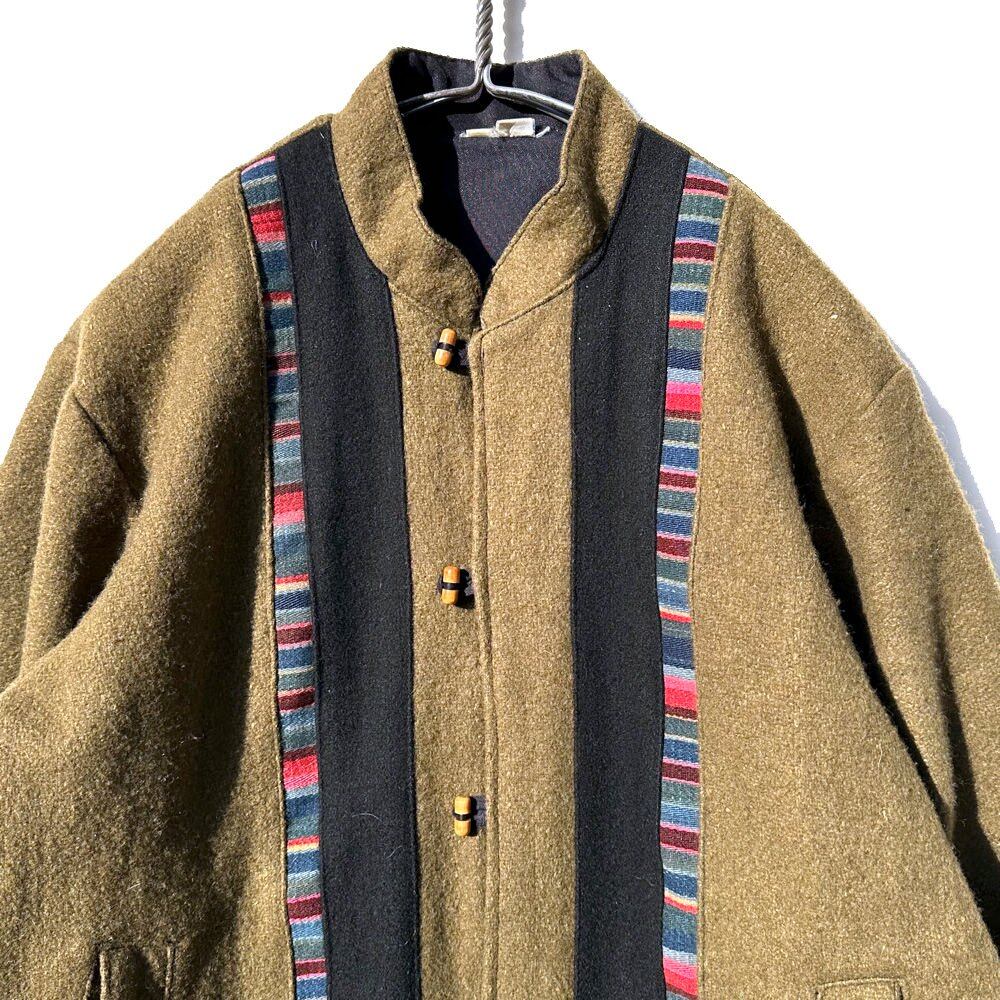 Tyrolean tape is arranged on the front and cuffs, giving it a simple and elegant impression even though it is an ethnic jacket made in Nepal.