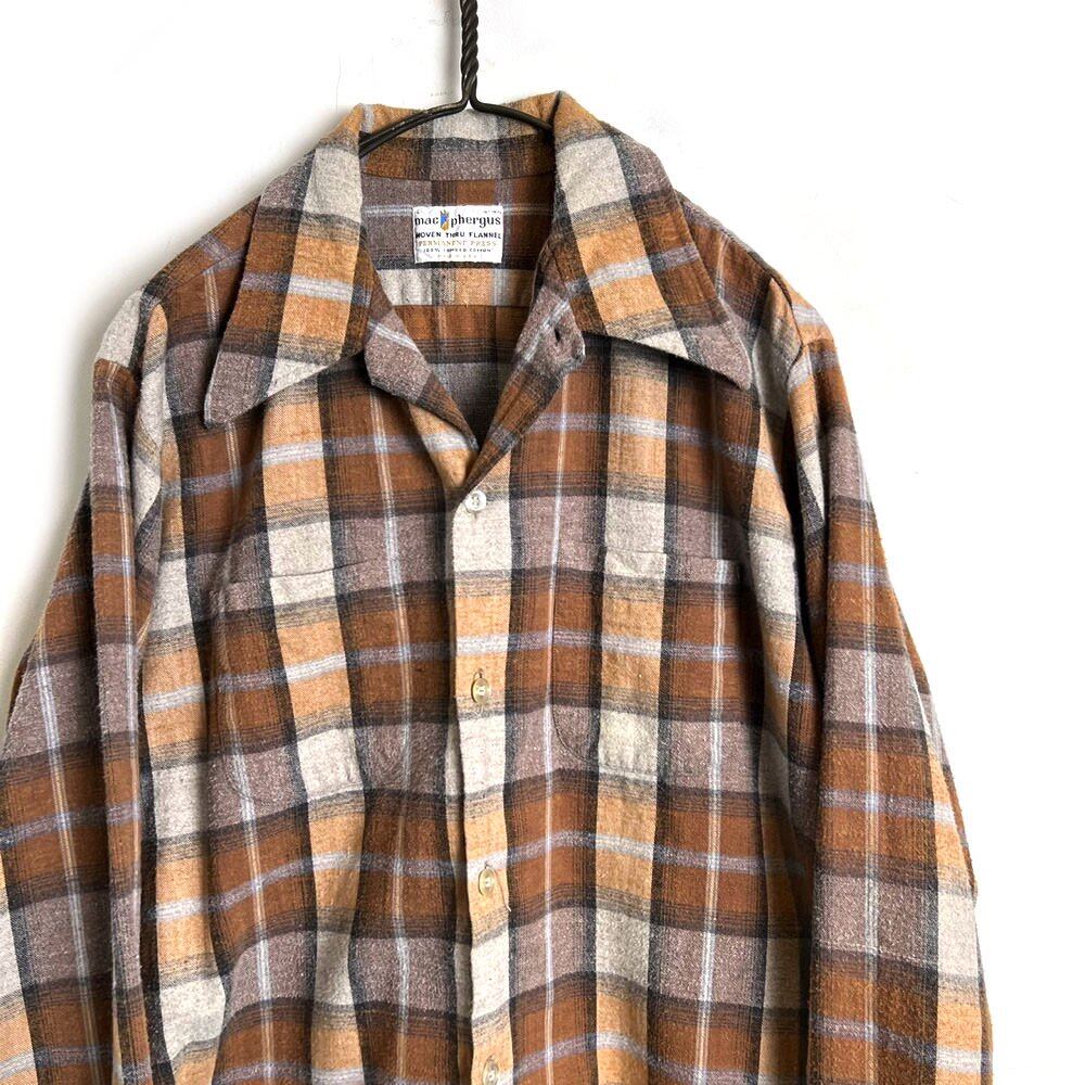 Cotton flannel shirt from the 70s, brown x gray, with a check pattern in a tasteful vintage color that has faded over time. 100% cotton flannel fabric with a soft texture. Good size with just the right amount of room. A piece with a great silhouette.