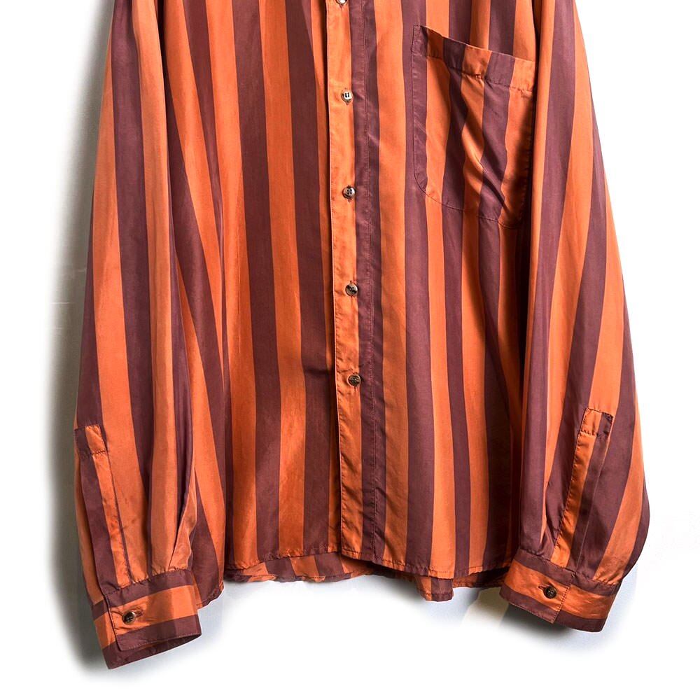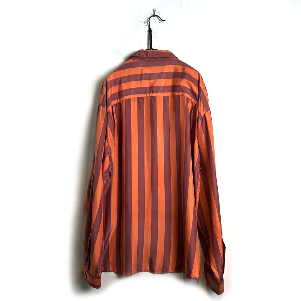 A 90s silk shirt with rare salmon pink and pale purple stripes.