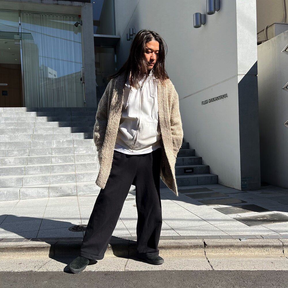A long cardigan from the 1980s.A vintage knit item that can be worn by both men and women, with a relaxed silhouette that feels like a beige and white mixed color gown.
