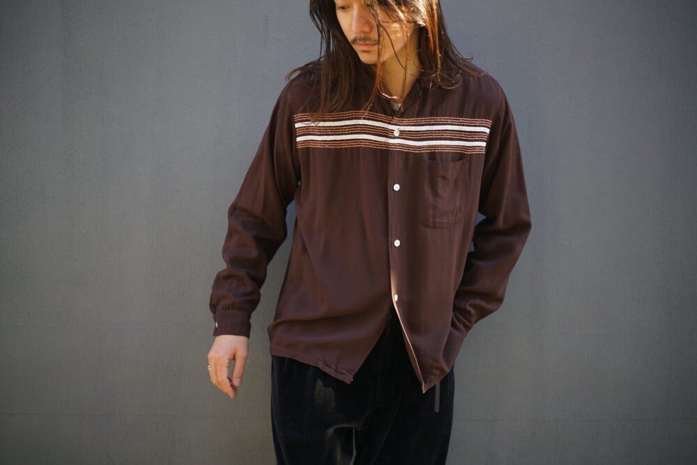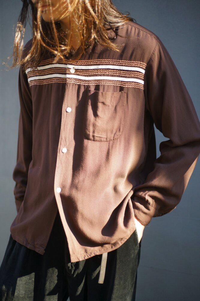 This is an open collar rayon shirt made by Cruiser from the 1960s.