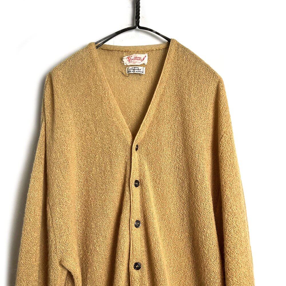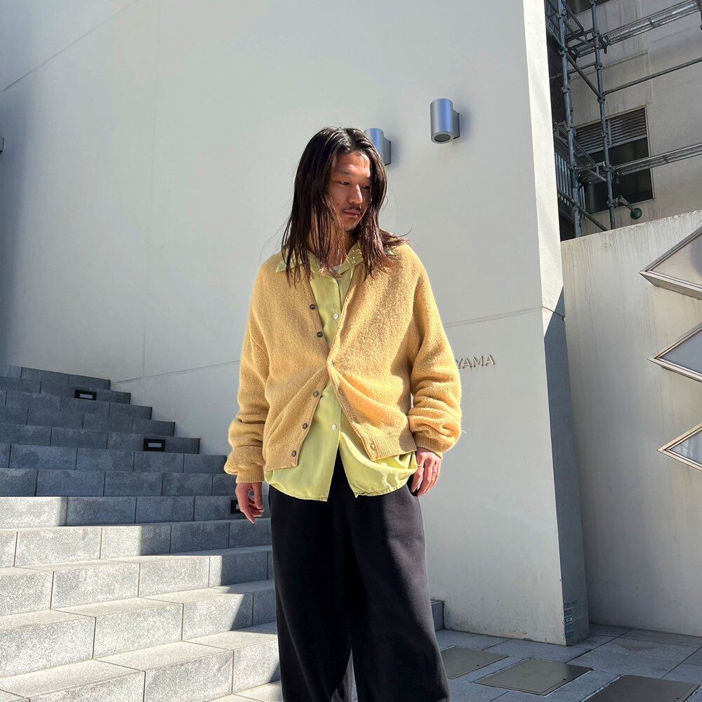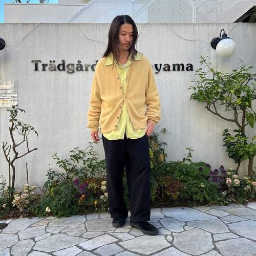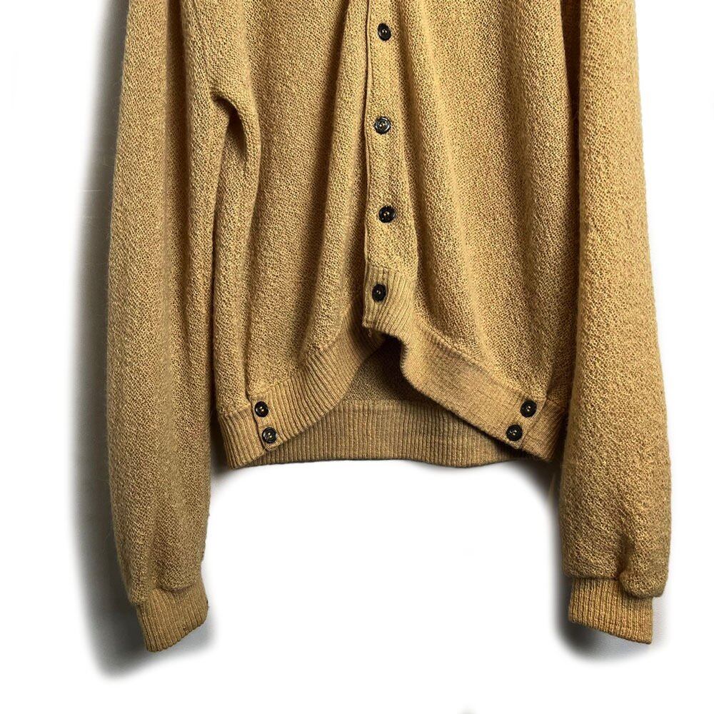 High-quality knit made of 100% alpaca material, with a soft and light texture unique to alpaca.A loose and relaxed silhouette, which is rare for golf cardigans of this age.The soft cream beige color gives it a nice atmosphere.
