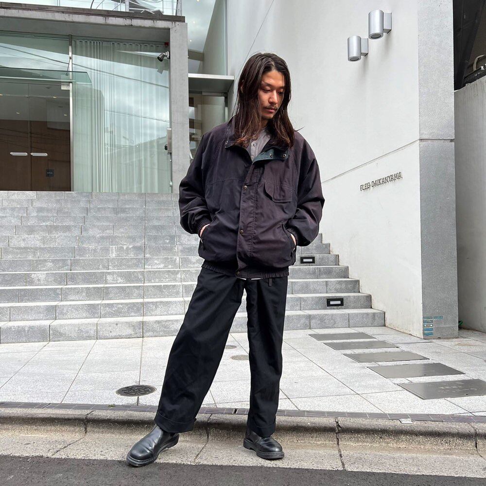 Drizzler Jacket from the 90s Made of polyester fabric with brushed peach skin cloth, the fabric has a smooth texture.The black color has slightly faded over time, giving it a worn-in feel.A suitably relaxed and relaxed piece. A piece with a silhouette and good size.
