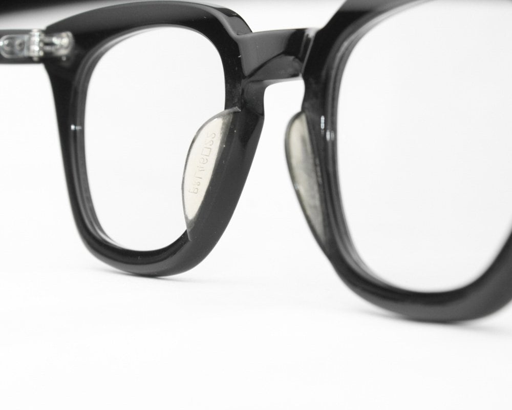 Vintage [Bausch & Lomb] glasses from the 1960s. This brand is known as one of the three major American eyewear manufacturers and has a history of over 150 years, but since B&L Ray-Ban was the last, they no longer make eyeglasses in modern times, making their vintage frames one of the rarest. Iconic cross-hinged horn rim safety. These safety glasses were used in factories, but the angular silhouette gives them a more manly look than other manufacturers. This is an item that has become completely hard to find in recent years, and is a valuable piece with a minimalist black color and a good size. We have newly installed ultra-thin colored UV lenses. It has been inspected and maintained at an eyeglass store, and the size of the temples (or ropes) can be adjusted to adjust the degree of curvature. (At your local eyeglass store) We have carefully inspected the condition, but as it is a vintage item, there may be scuffs and scratches. Please understand the characteristics of vintage and antique items before purchasing. All of our glasses are maintained and lenses replaced at G Room, an eyeglass store in Ebisu, Tokyo.