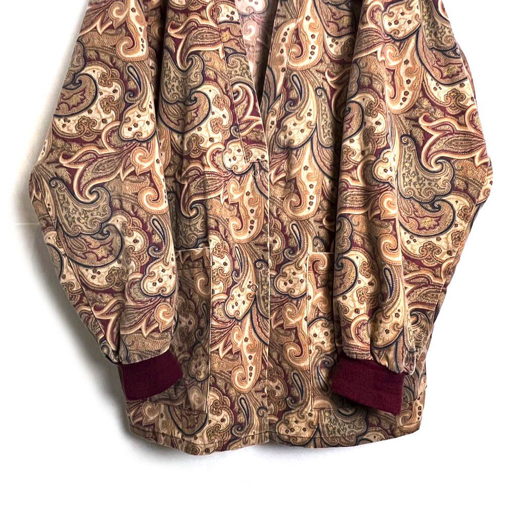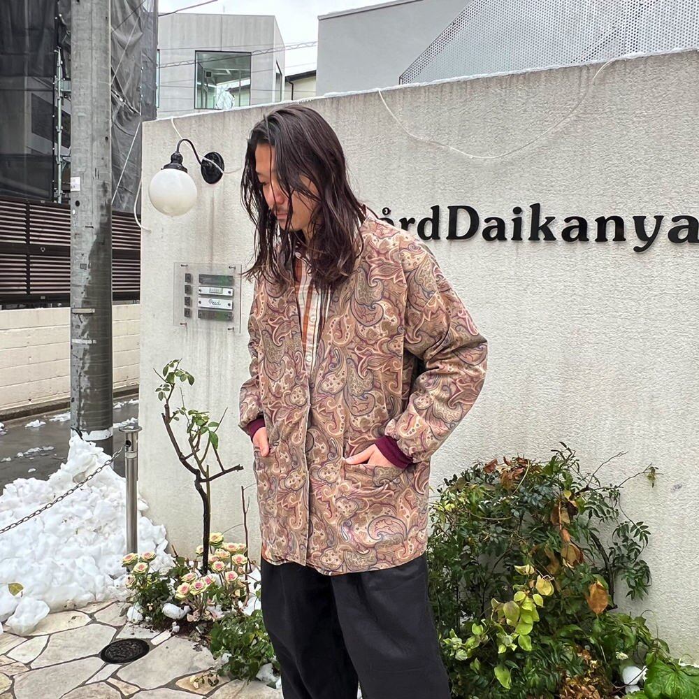 It has a light feel like an 80s cardigan jacket shirt, and the khaki x burgundy paisley pattern gives it a nice atmosphere.It has a moderately loose and relaxed silhouette, making it the perfect piece for spring wear.