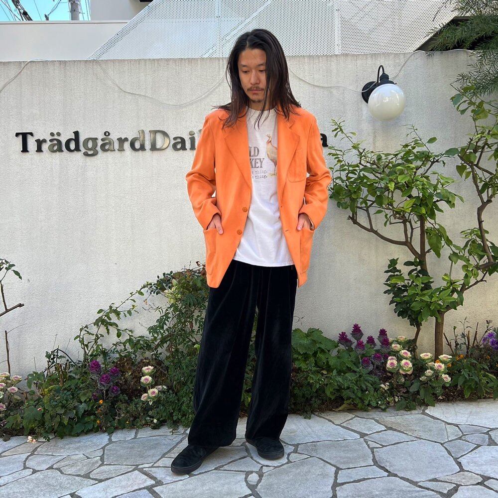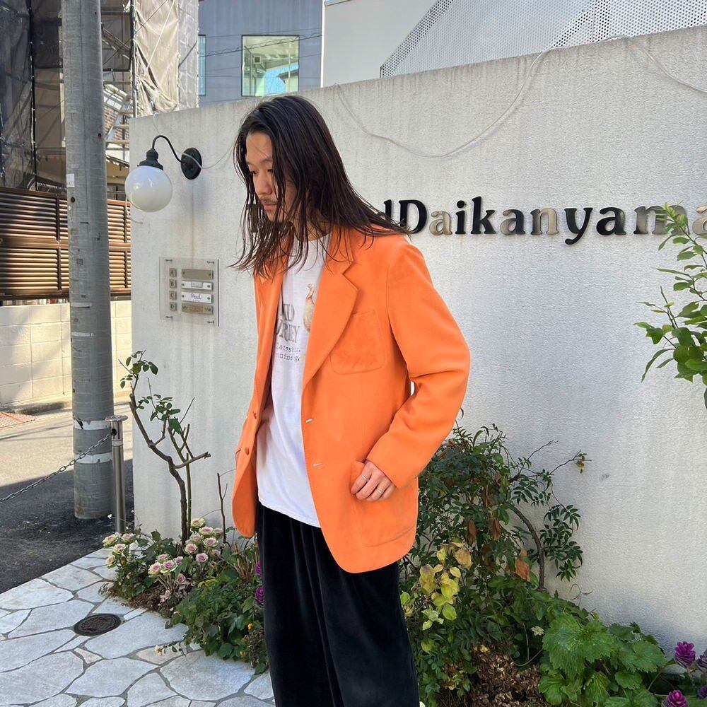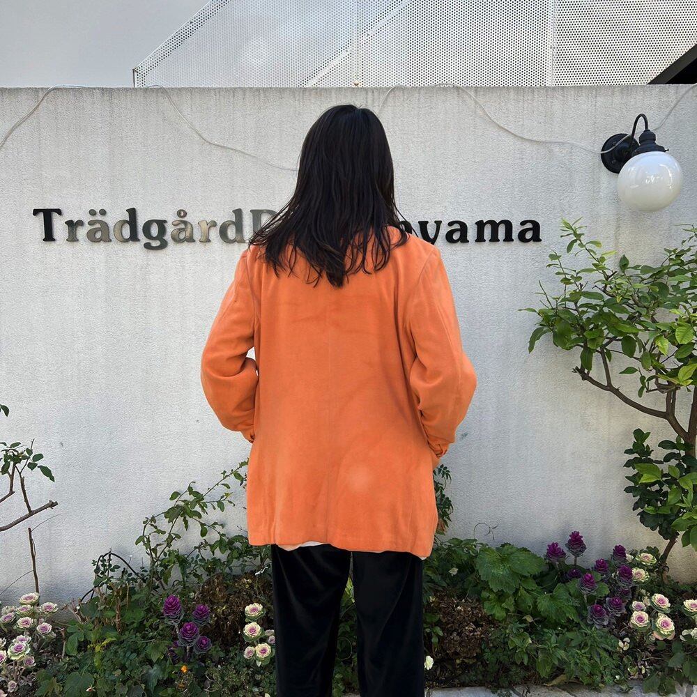 Tailored jacket from the 70s The fluffy and soft fabric of cotton and acrylic and the orange color that has faded over time give it a great atmosphere.A vintage jacket with a good size and a beautiful silhouette with just the right amount of room.