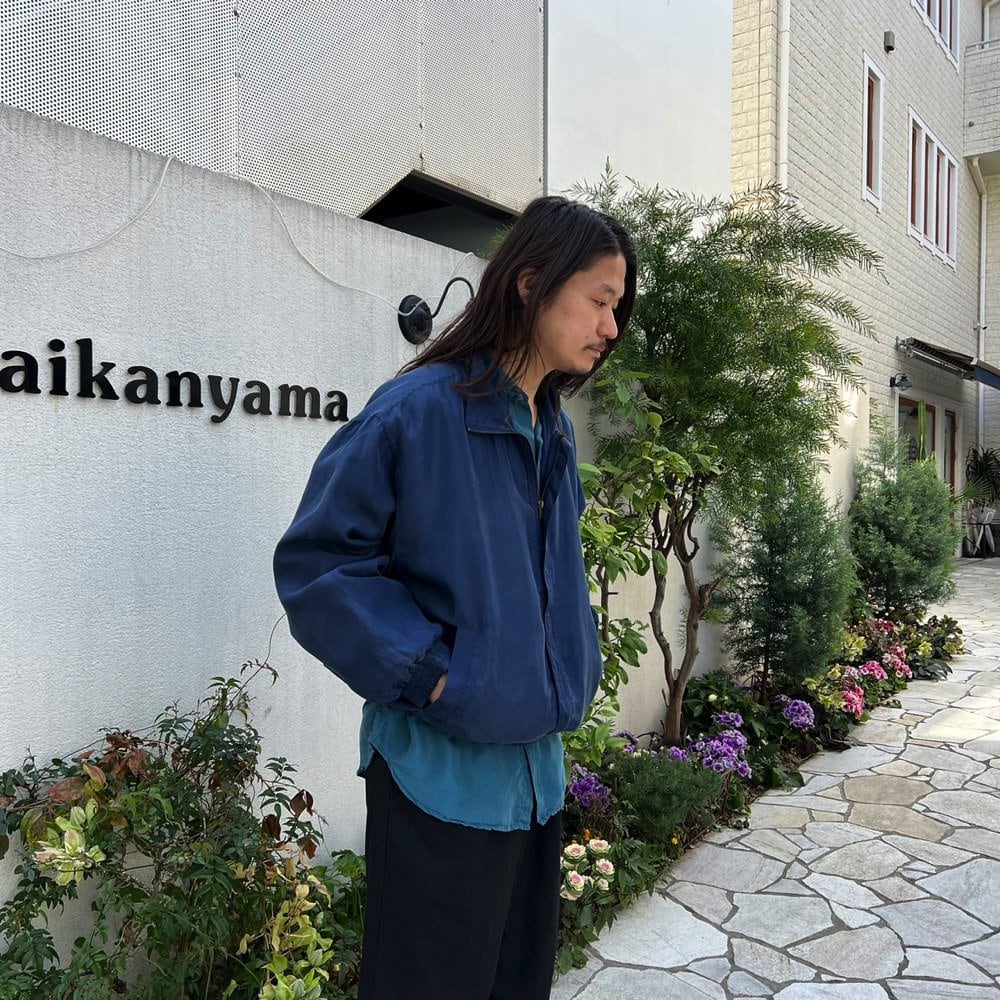 The light and smooth feel of 100% silk, the grayish navy color of a simple drizzler-type silk jacket, and the condition of this item is good as it is dead stock.It is a good size item with just the right amount of room.