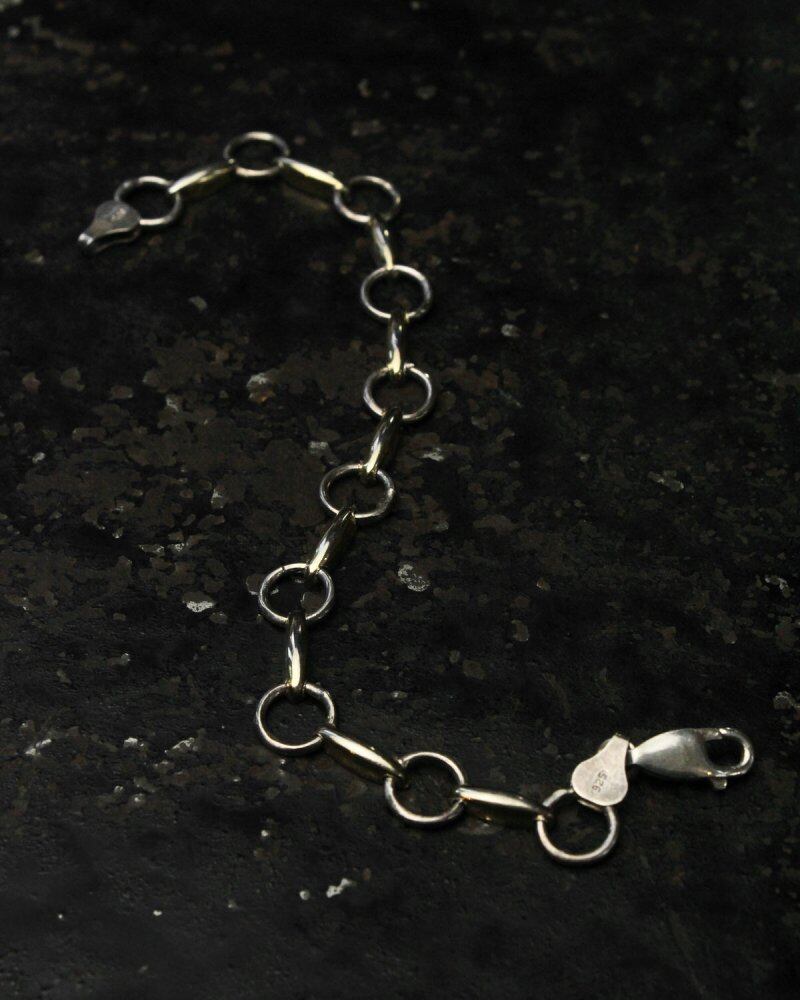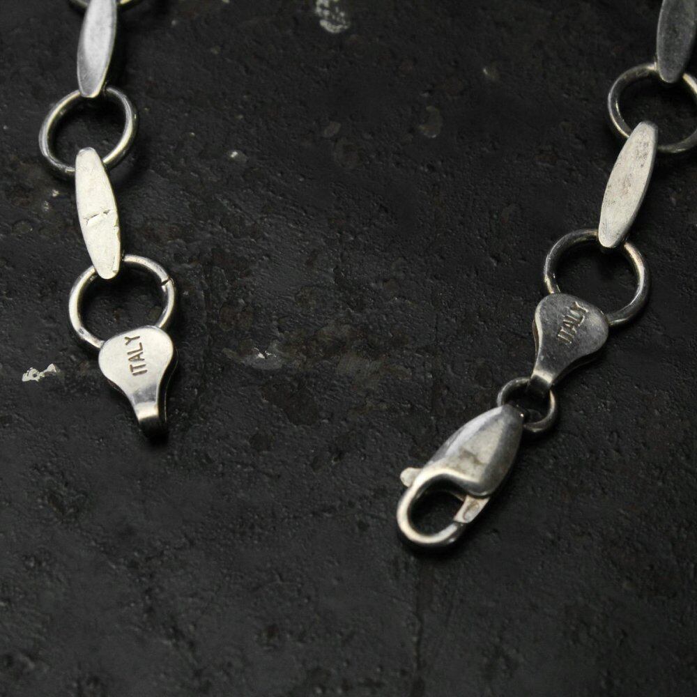 A chain bracelet made in Italy by craftsmen who specialize in delicate construction. The minimalist jump ring and oval parts with gold plating on the sides give it an elegant look. Medium-thick size, it has a casual but just the right amount of presence. It can be layered or the back side is simple, so the look will change with both. 925 stamp. Since it is an old item, there may be some scratches, etc. Please check the photos and understand the vintage characteristics before purchasing.