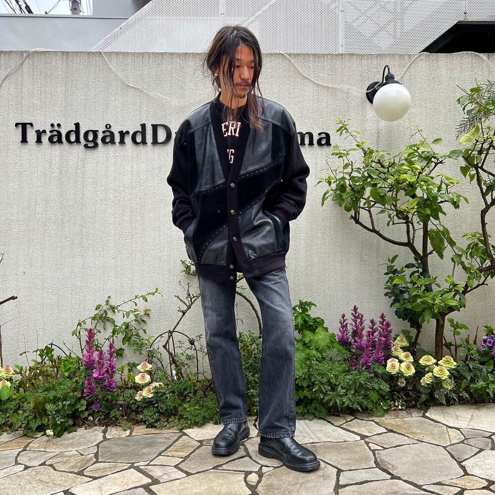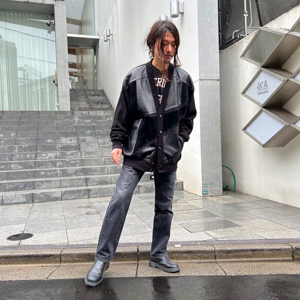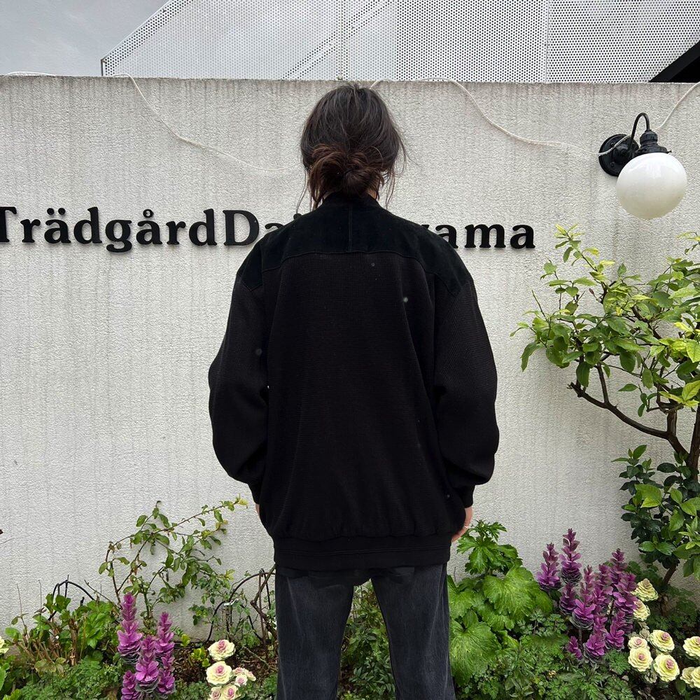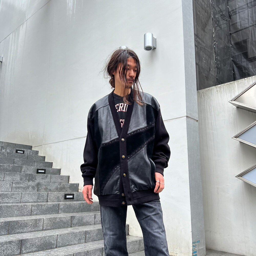 An interesting vintage cardigan from the 90s with an asymmetrical switching design of leather, suede and knit.The black color has a different look depending on the texture of the material.It is a good size and has a good silhouette with a good amount of room.