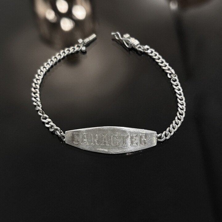 ID bracelet made in Peru. This piece has a wartime feel and a unique design with the CARACTER signature. It is minimalist and has a subtle but moderate presence, making it suitable for stacking. As it is an old item, there are scratches, etc. Please check the photos and understand the characteristics of vintage items before purchasing.