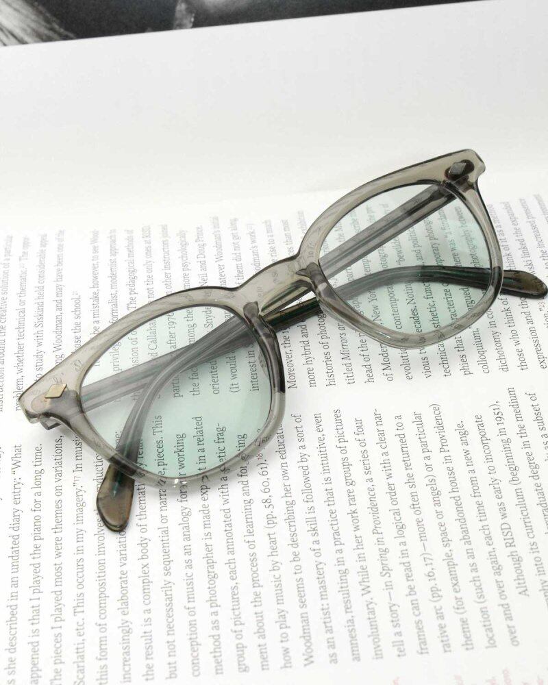 These are government-issued glasses provided to the USS (United States Safety Service), the US military. They are a rare pair of Wellington-style glasses with diamond hinges that were used until the 1960s. The grayish clear frame, which is also common to vintage safety frames of mannish Wellington styles, gives the impression of blending in with the face. New light green UV lenses have been installed. The glasses have been maintained at an eyeglass store and polished to give them a natural sheen. Although we have carefully examined the condition, they are vintage products and may have scratches or scuffs. Please understand the characteristics of vintage and antique items before purchasing. All of our glasses are maintained and lens replaced at g room, an eyeglass store in Ebisu, Tokyo.