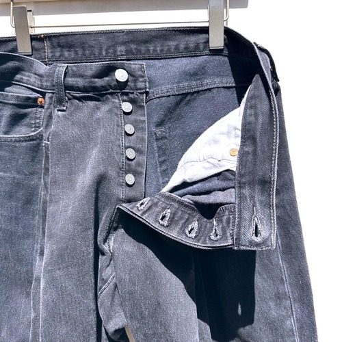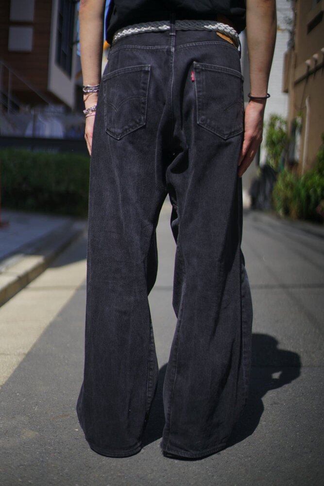 Made In USA Levis-501 black denim disassembled and reconstructed.