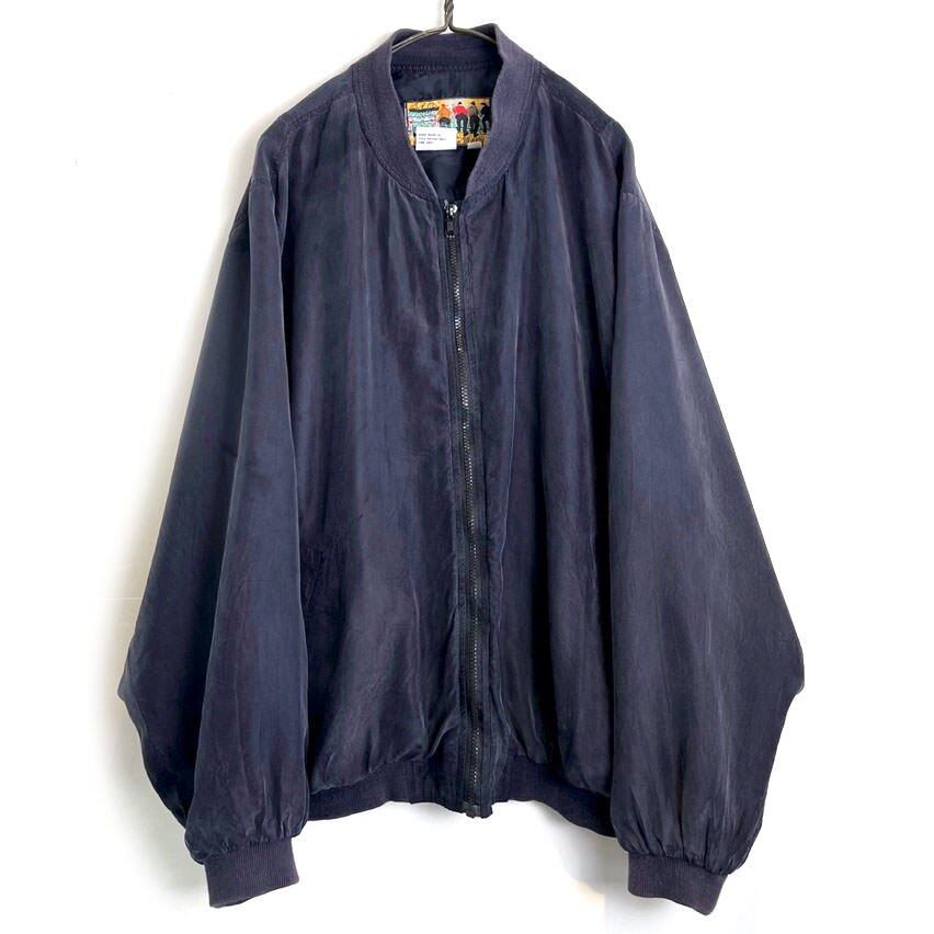 The light and smooth texture of the 100% silk fabric and the MA-1 bomber jacket-type design make this a piece that is easy to match with other items. The grayish navy color gives it a sophisticated and mature feel, and the relaxed silhouette with just the right amount of room makes this a perfect piece to wear in the spring.