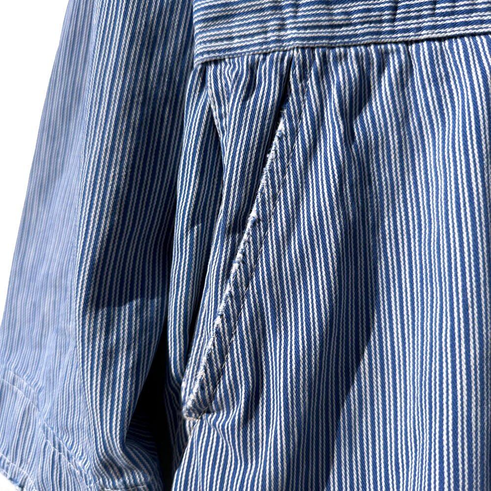 The soft, supple texture that develops over time, and the aging and damage that is unique to vintage items, give them a one-of-a-kind presence, and they have an edgy look that is unique to vintage items that cannot be achieved with a brand new hickory stripe.