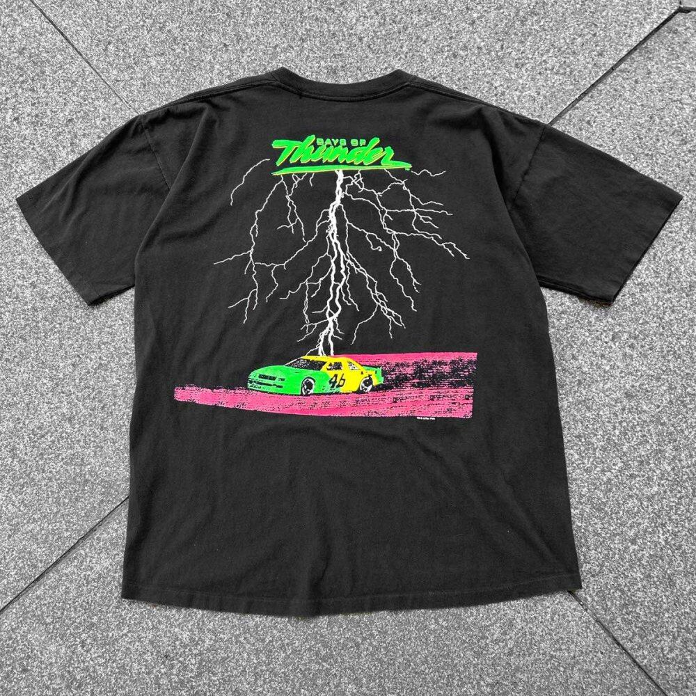This is a promotional T-shirt for the 1990 film Days of Thunder. Following on from Top Gun, this film was directed by Tony Scott and starred Tom Cruise. The American design of the time is striking, yet somehow nerdy and vintage. The XL size has a loose silhouette that is rare for this era. As this is an old item, it may have aged slightly. Please check the photos and understand the characteristics of vintage items before purchasing.