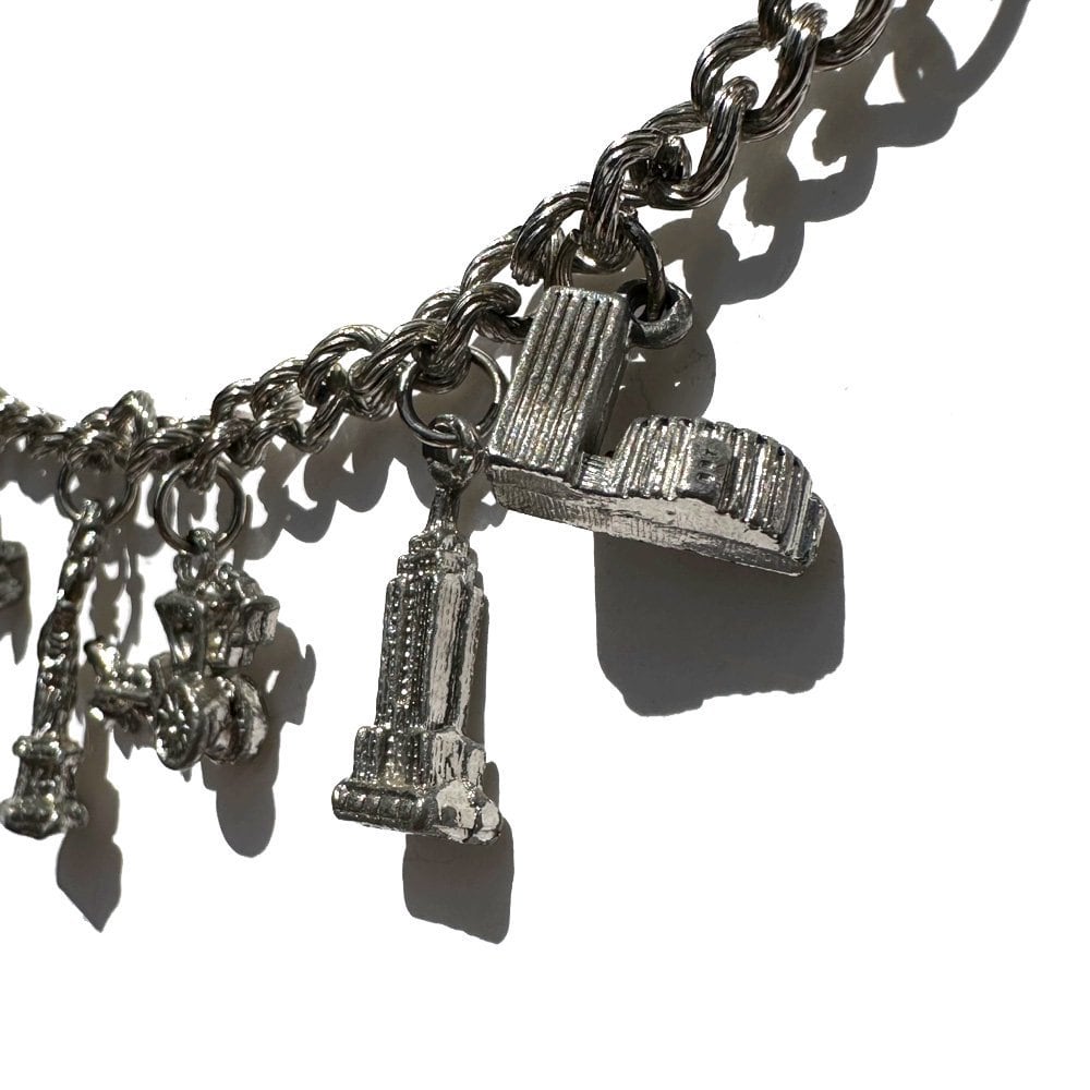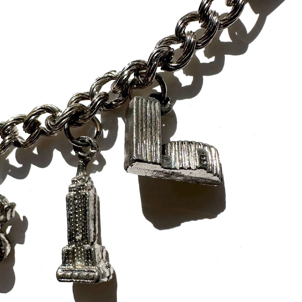 A total of nine charms with classic motifs, including street lamps, carriages, and benches, give the piece an elegant look.