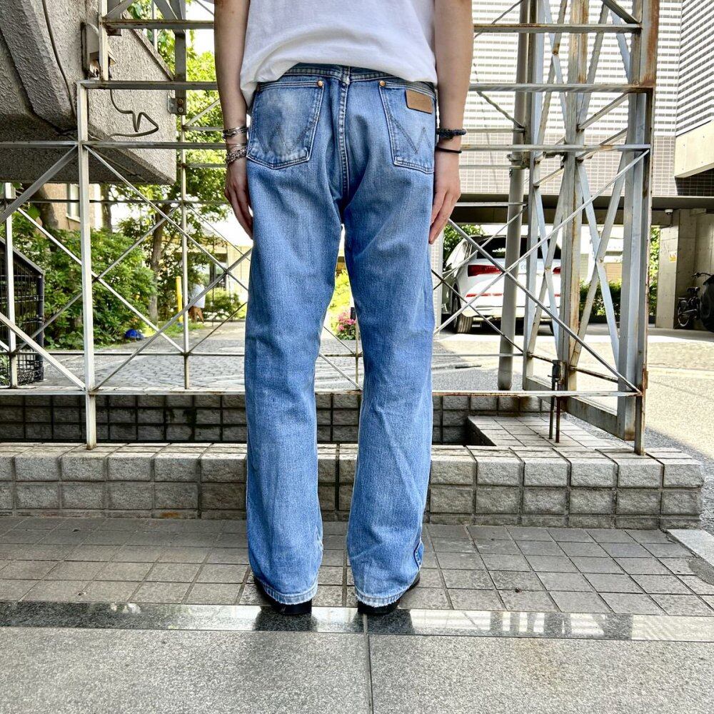 Wrangler straight denim pants from the late 1970s to the 1980s. Classic 13MWZ silhouette, vertical fading, creases, and a nice aged look. Golden size 36 (shrinks to 34) x 30, with a silhouette with room around the hips like a 505, giving it a mature feel. As these are old items, they may have aged slightly. Please check the photos and acknowledge this in advance.