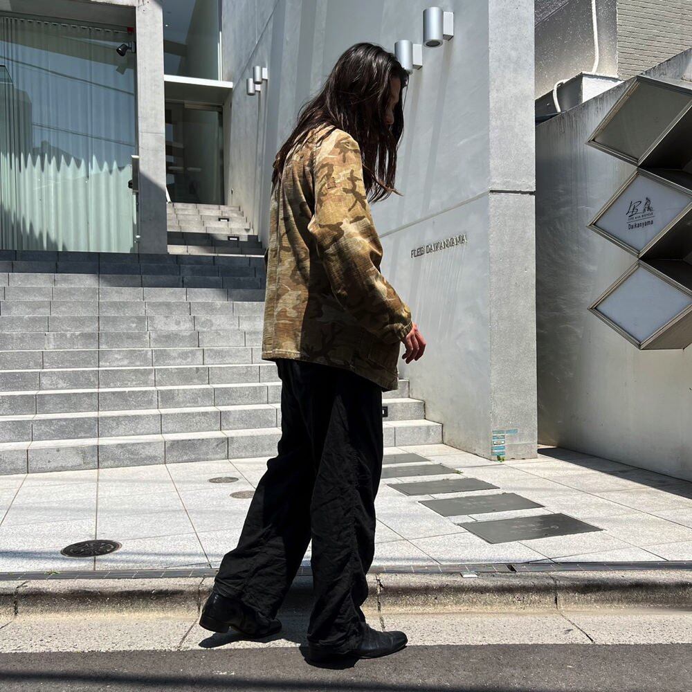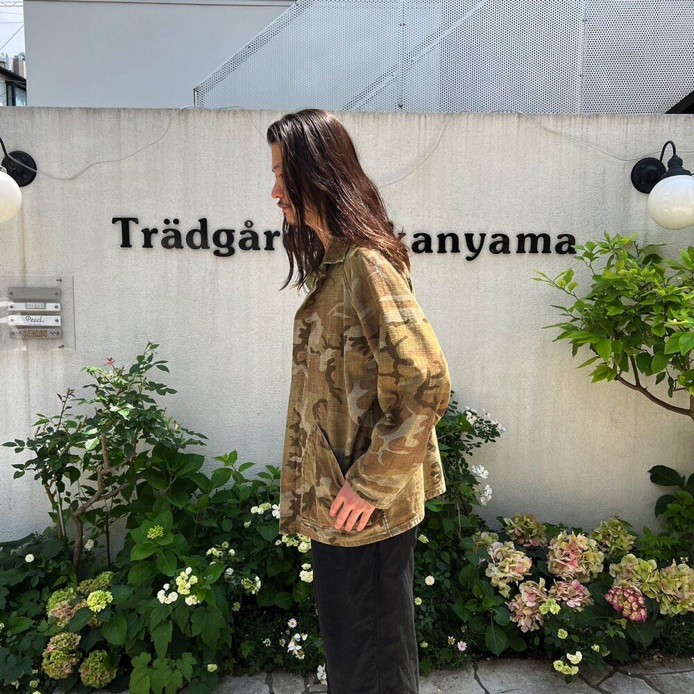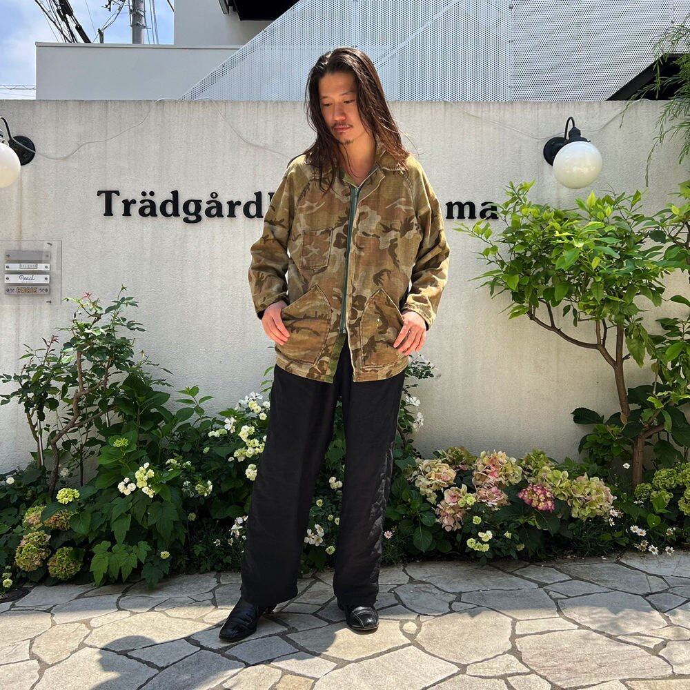 A rare 60s camouflage jacket that can be worn reversibly. It can be worn in two ways, woodland camo and desert camo. Its a great value piece. The fabric has softened over time, and the texture is nice. The size is just right, not too big or too small.