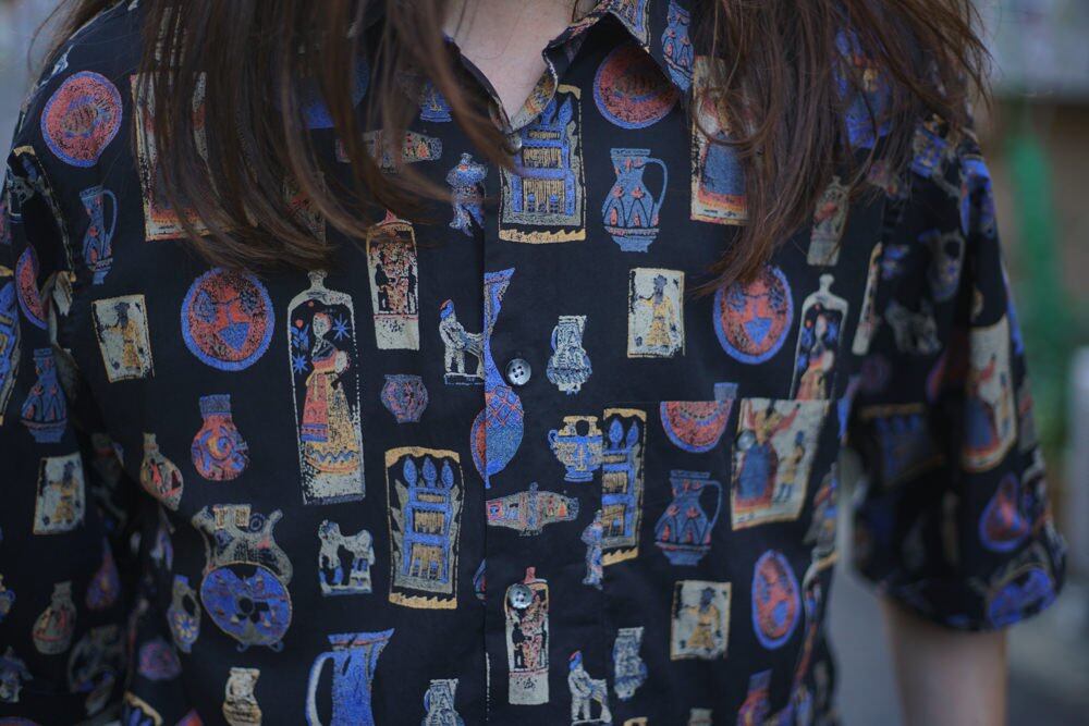 This art pattern shirt is made by Acroi and features cotton fabric with a smooth texture that feels soft and comfortable against the skin.