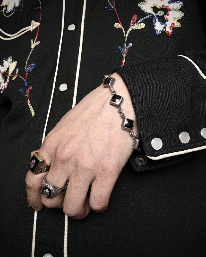 Made in Taxco, Mexico, one of the worlds leading silver mining areas, where many silver artists and craftsmen have gathered since ancient times. This vintage piece has been attracting attention in recent years for its unique evolution, with designs that range from Aztec native elements to Native American jewelry with influences from the American Southwest, and sophisticated Scandinavian minimalist designs. This is a medium-sized but heavy diamond-shaped piece with onyx inlay, creating a minimalist and mannish design with a strong contrast. The angular design gives it a presence without being too calm. Stamped with Mexico-Tasco 925 silver. As it is an old item, there are scratches, etc. Please check the photos and understand the characteristics of vintage items before purchasing.