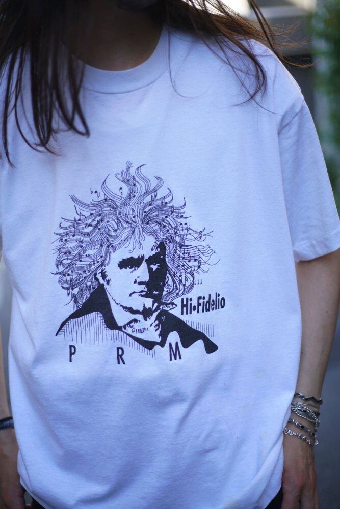 A pop artwork featuring a monochrome drawing of Beethoven with musical notes scattered throughout his hair.