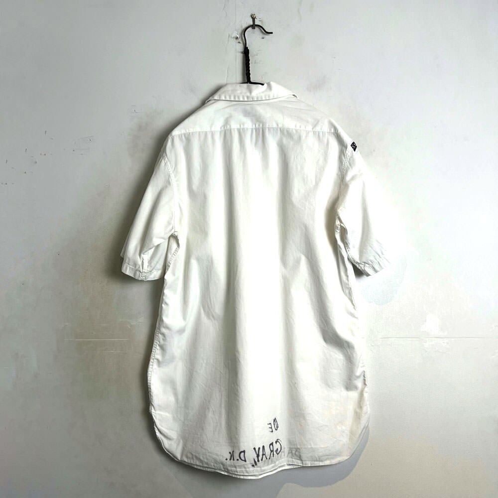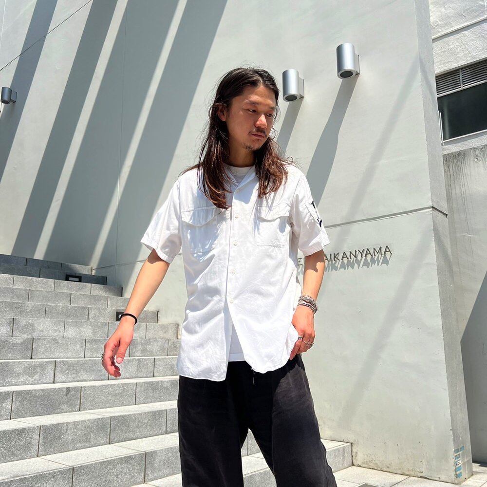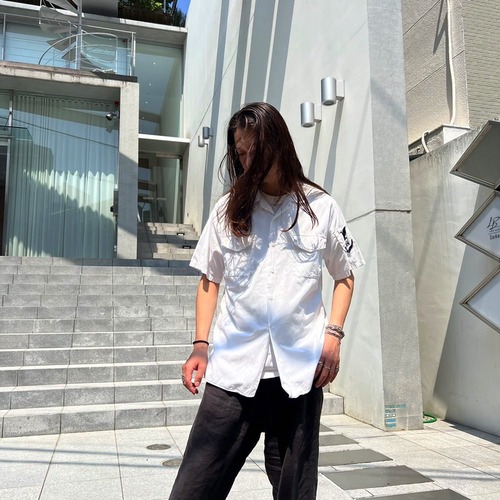 A short-sleeved shirt from the 1950s US Navy. The 100% cotton fabric has a soft texture with age, and the patches on both sleeves give it a nice look. I cant confirm the size, but its about a 16.5 L size, and it has a nice, relaxed silhouette. A white shirt perfect for summer.